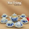 Điểm nhấn đầu tiên chạm vào thị giác người thưởng trà chính là sắc men lam huyền thoại – dòng men đặc trưng đã làm nên tên tuổi của gốm sứ Bát Tràng qua hàng thế kỷ. Trên nền men trắng xanh nhã nhặn, các họa tiết được nghệ nhân vẽ tay thủ công hoàn toàn, nét bút khi trầm khi bổng, tạo nên chiều sâu cho sản phẩm.