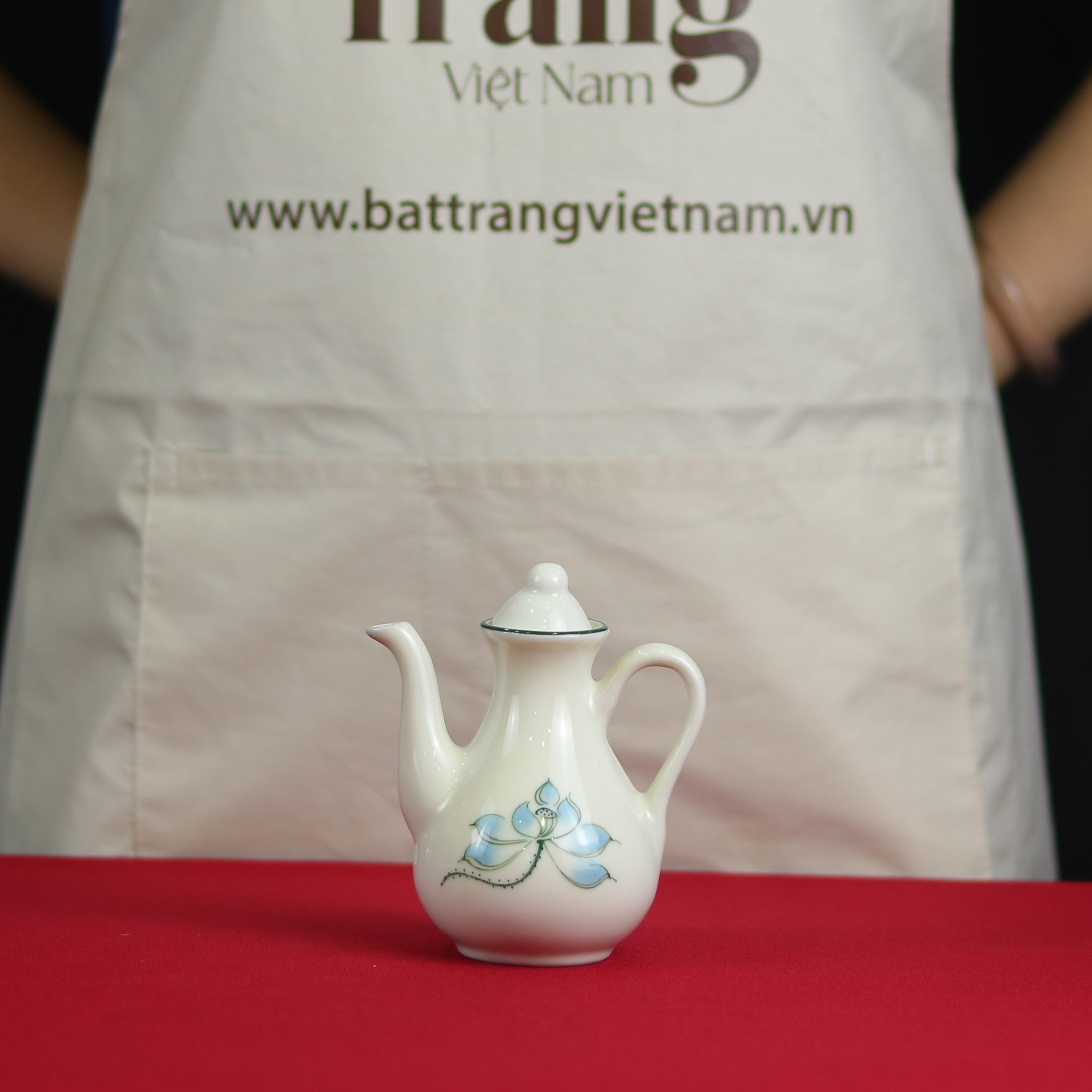Mỗi cánh sen, mỗi đường nét lá đều được thể hiện sống động bằng sắc xanh lá và xanh dương hài hòa, kết hợp với viền miệng ấm màu xanh lá nổi bật. Đây là minh chứng cho tài hoa của người nghệ nhân Bát Tràng, những người luôn thổi hồn vào từng sản phẩm để tạo nên những giá trị vượt thời gian, góp phần làm phong phú thêm bộ sưu tập Gốm Bát Tràng Việt Nam.
