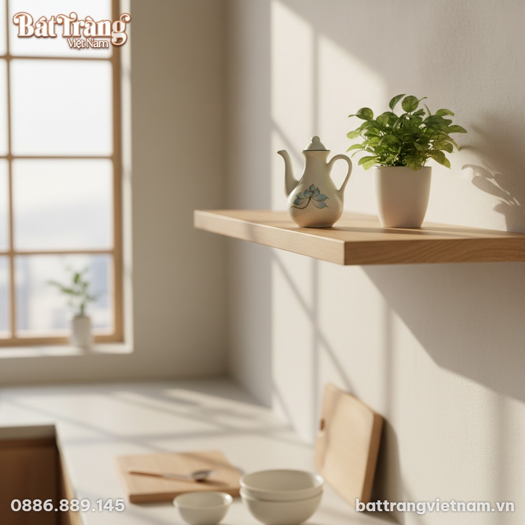 Chiếc ấm mắm này không chỉ phục vụ nhu cầu sử dụng mà còn là vật trang trí nhỏ xinh, mang đến hơi thở của làng nghề Bát Tràng truyền thống vào không gian sống hiện đại của bạn. Đây là minh chứng cho sự linh hoạt và khả năng ứng dụng rộng rãi của gốm sứ Bát Tràng trong đời sống, từ vòi rót thanh thoát đến đáy ấm vững chãi, mọi chi tiết đều được chăm chút kỹ lưỡng.
