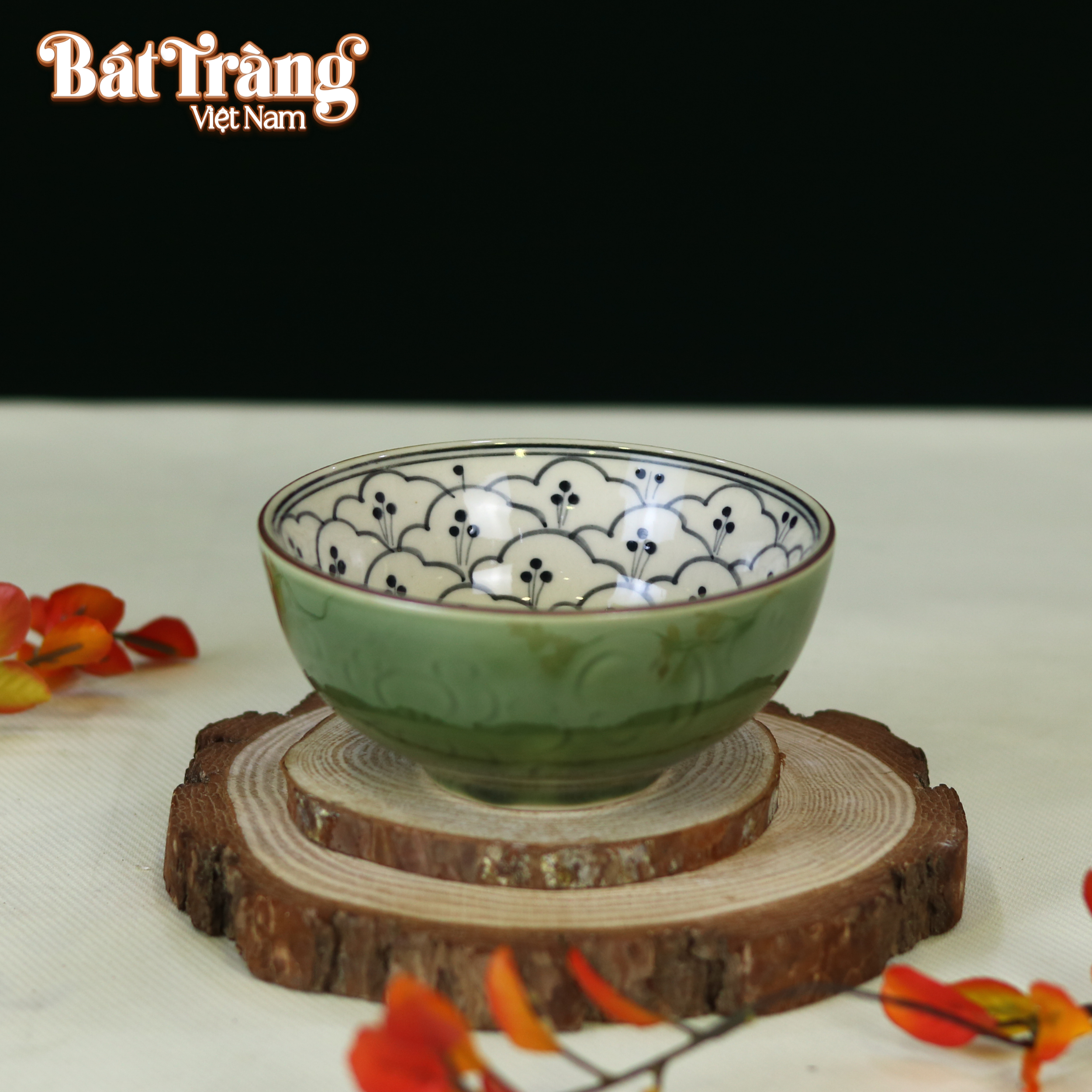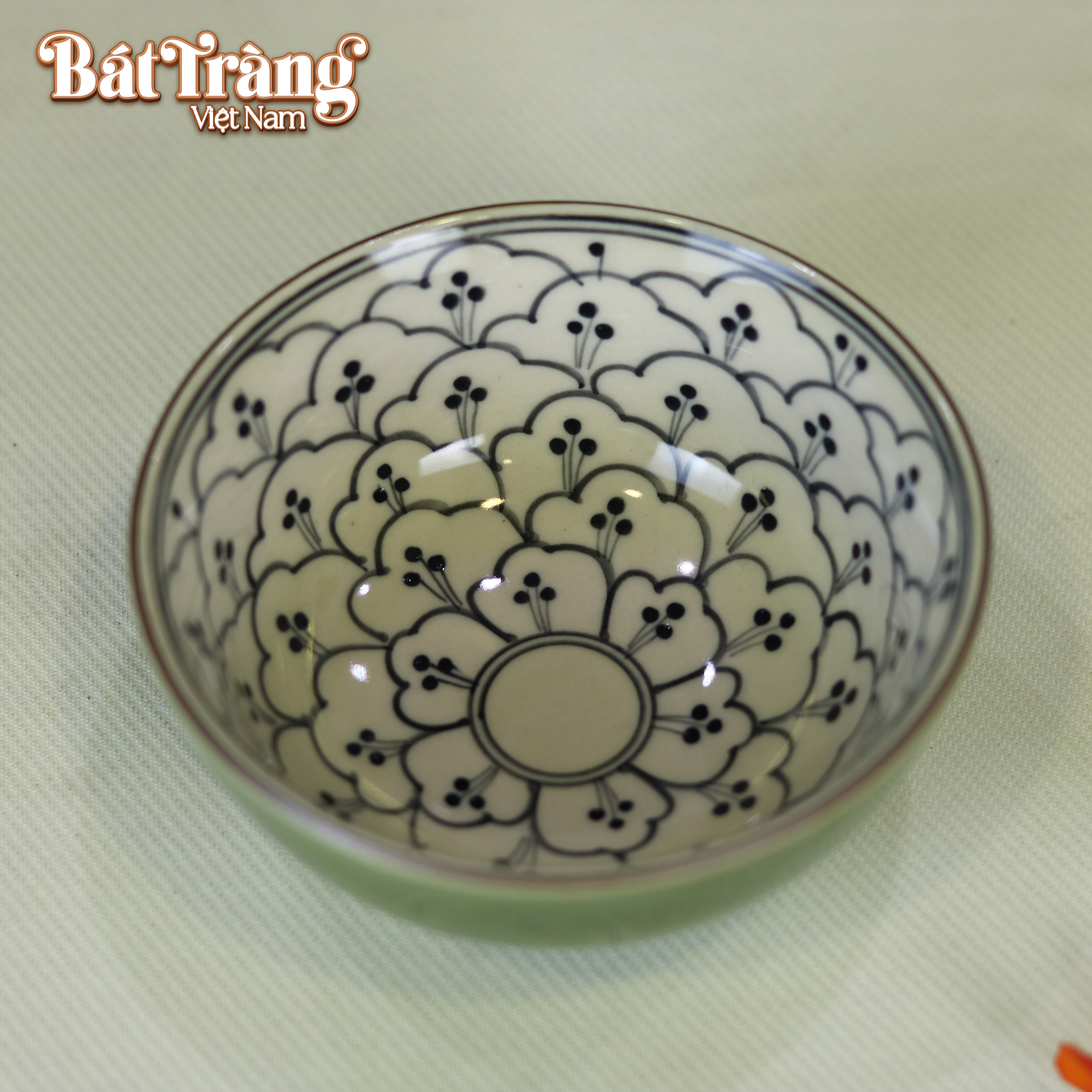 Sản phẩm mang “linh hồn” của làng nghề Gốm Bát Tràng Việt Nam, thể hiện sự khéo léo và tinh tế trong từng đường nét. Vẻ đẹp trầm lắng của men xanh ngọc bên ngoài kết hợp hài hòa với sự tinh tế của họa tiết vẽ tay bên trong, tạo nên một tổng thể vừa truyền thống vừa hiện đại.
