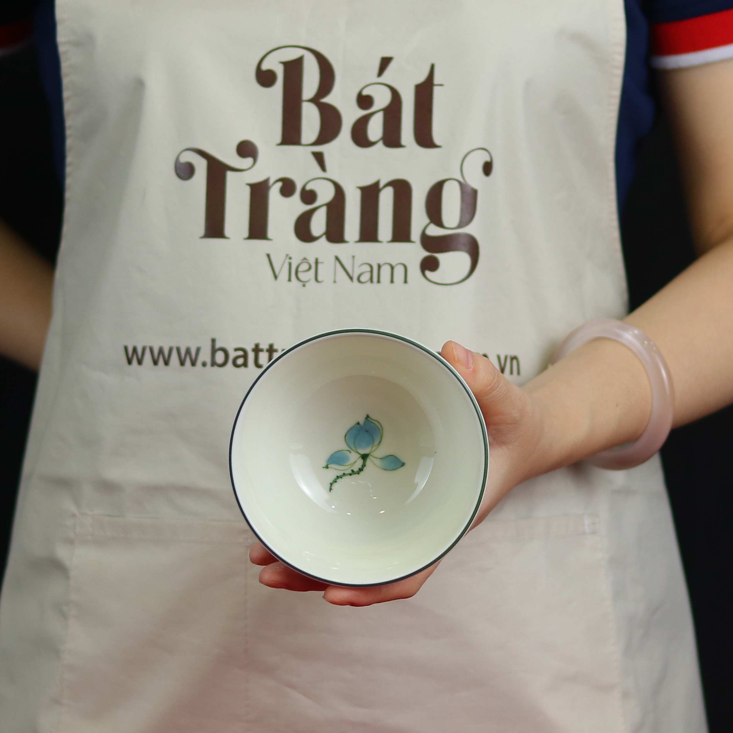 Họa tiết sen xanh, biểu tượng của sự thanh cao, thuần khiết và trí tuệ trong văn hóa Việt, được các nghệ nhân Bát Tràng vẽ tay một cách tỉ mỉ, thổi hồn vào từng đường nét.