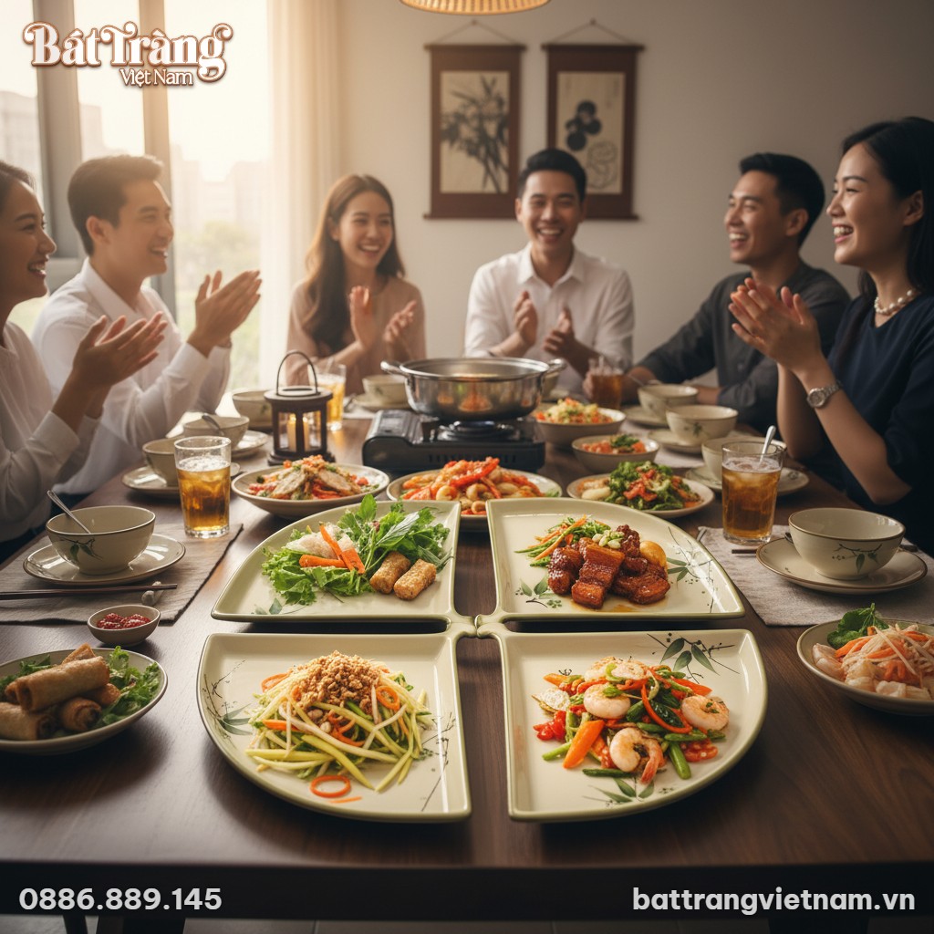 - Nâng tầm mâm cỗ: Khi bày trí mâm cỗ ngày lễ, Tết hoặc các dịp đặc biệt, chiếc đĩa này sẽ giúp các món ăn trở nên hấp dẫn hơn, thể hiện sự chu toàn và tinh tế của gia chủ.