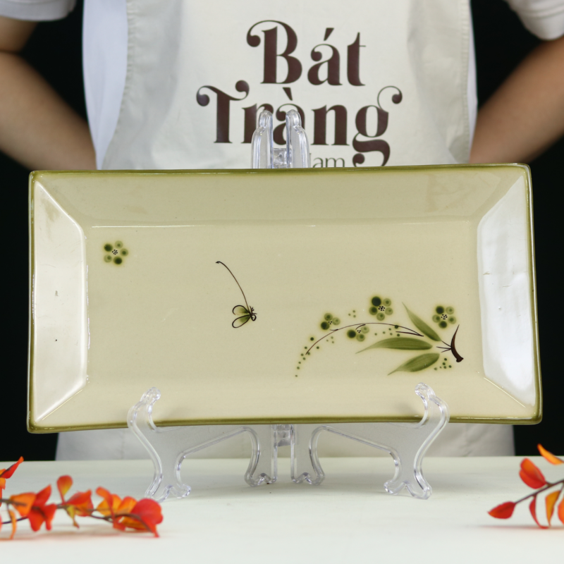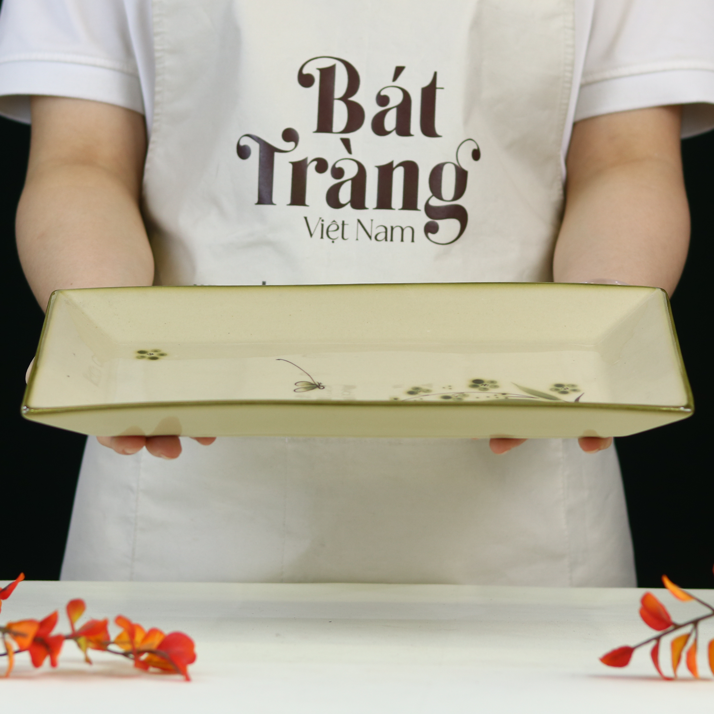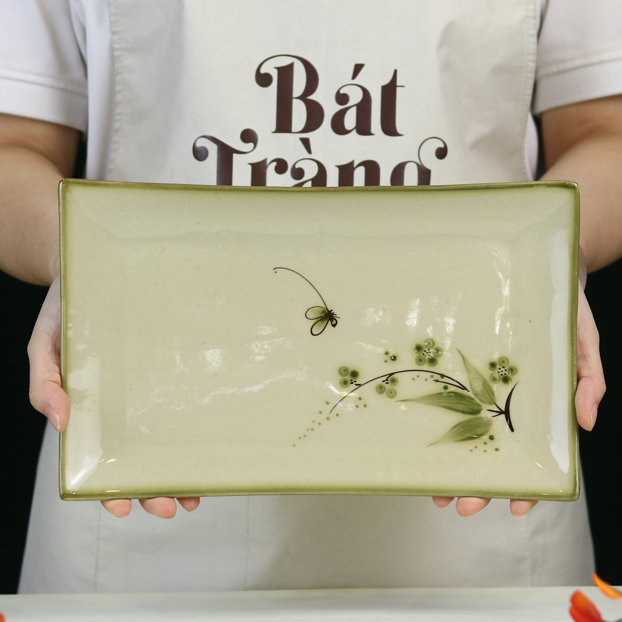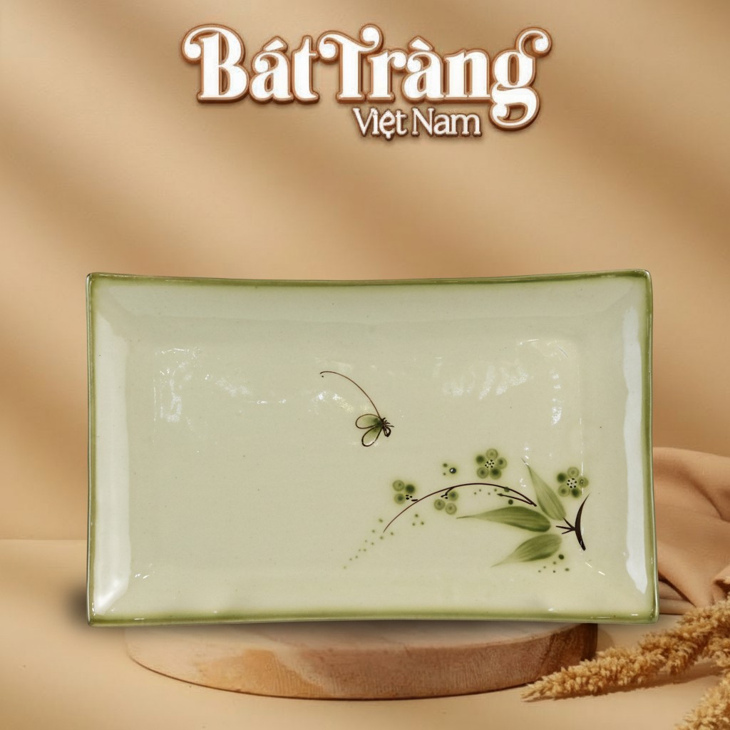 Đĩa chữ nhật bộ bát đĩa hoạ tiết chuồn trúc BT-BD86 là một tác phẩm gốm sứ tinh tế, mang đậm hơi thở thiên nhiên và sự khéo léo của nghệ nhân làng nghề Bát Tràng.