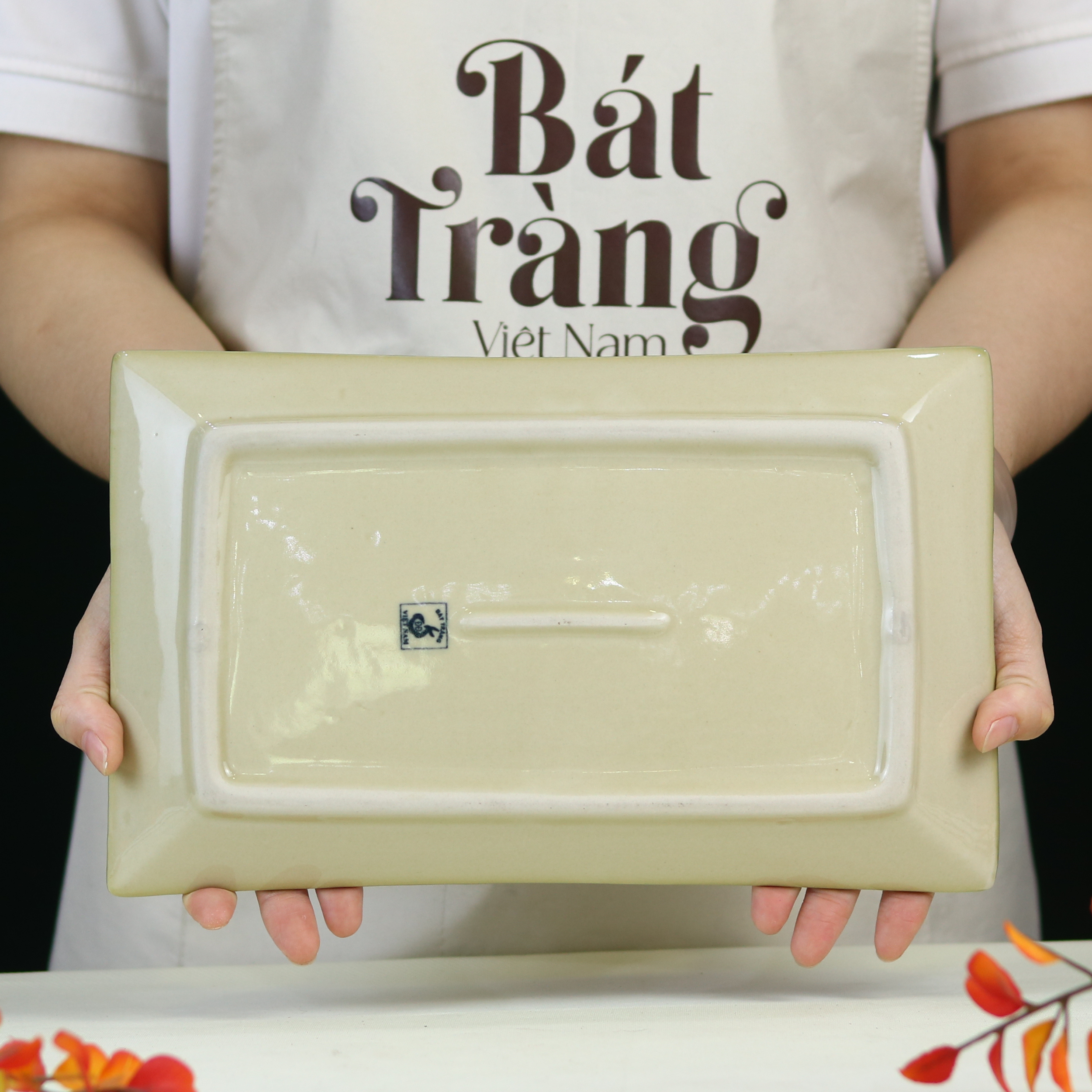 Trong bộ sưu tập bộ bát đĩa chuồn trúc của chúng tôi, Đĩa chữ nhật BT-BD86 nổi bật với gam màu men kem chủ đạo dịu nhẹ, kết hợp hài hòa cùng đường viền men xanh lá hoặc nâu xanh tinh tế. Đây là sự lựa chọn lý tưởng cho những ai yêu thích phong cách tối giản nhưng vẫn giữ được nét độc đáo và gần gũi với thiên nhiên.