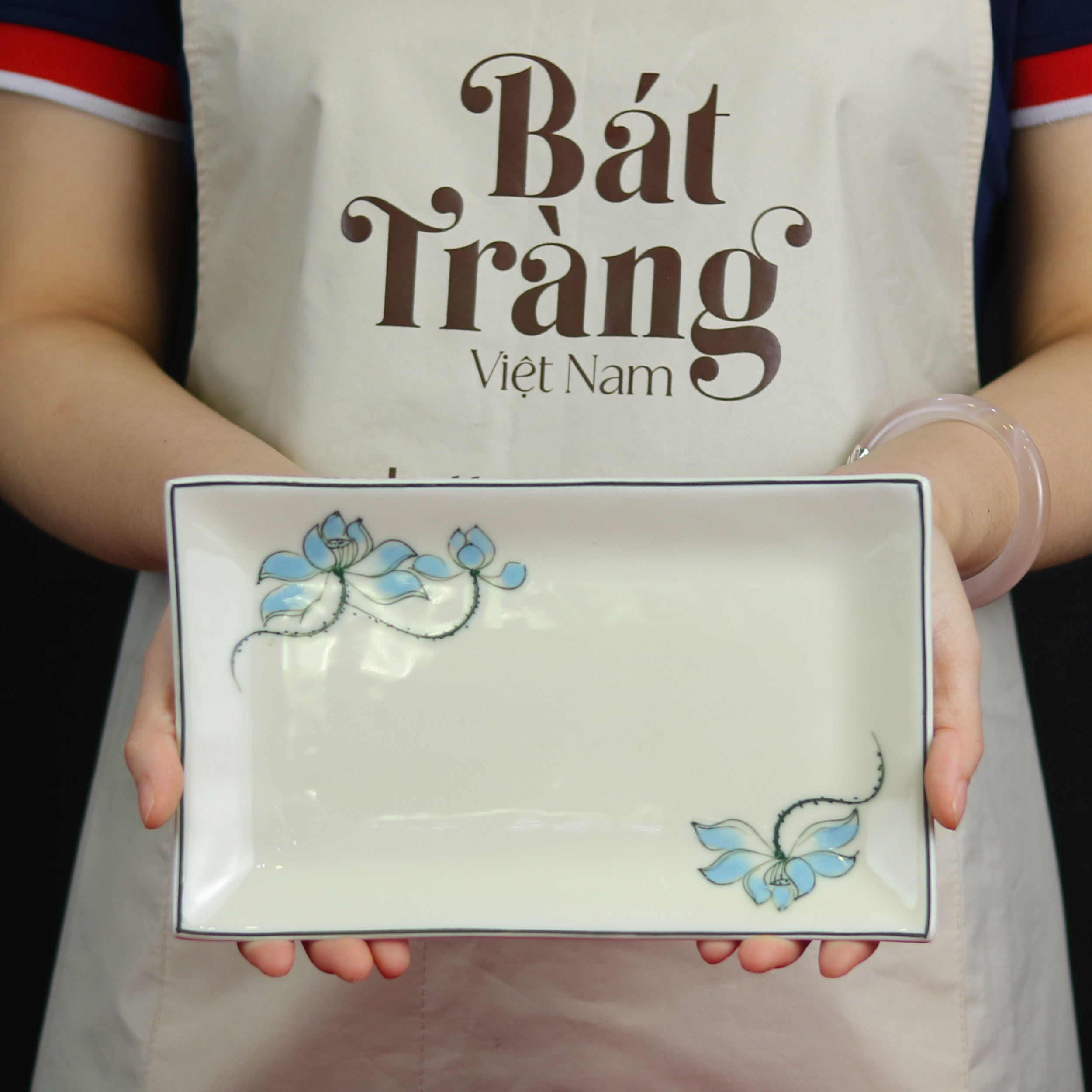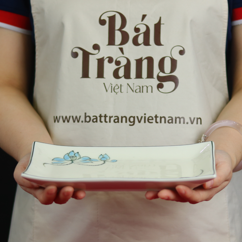 Đĩa chữ nhật hoạ tiết sen xanh Bát Tràng BT-BD118 là một minh chứng sống động cho sự giao thoa hài hòa giữa giá trị truyền thống và thẩm mỹ hiện đại trong các sản phẩm Gốm Bát Tràng Việt Nam.