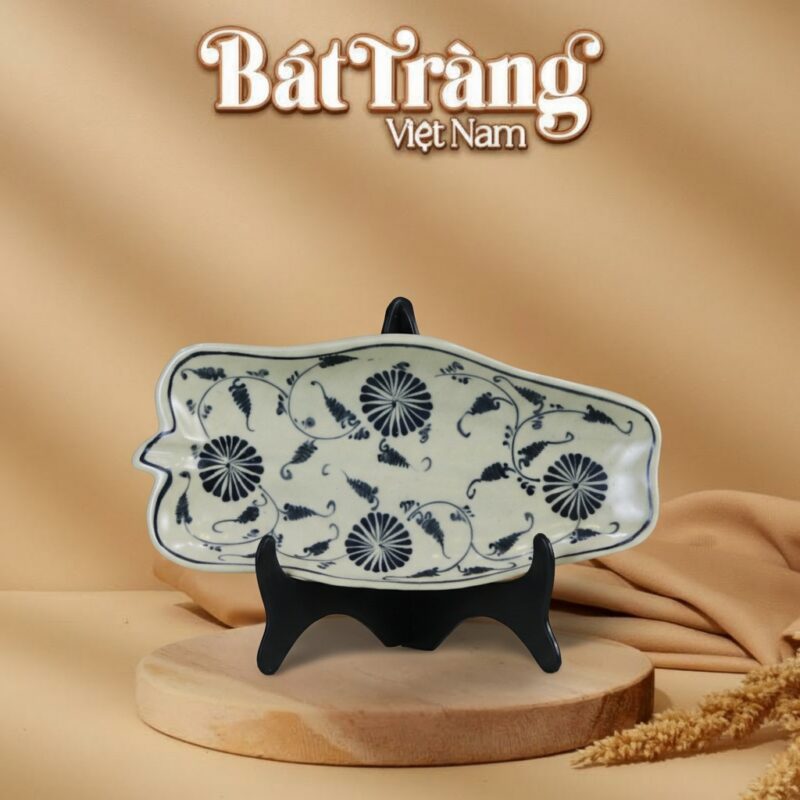 Đĩa khay lá chuối men trắng hoạ tiết hoa cúc lam BT-BD69 là một tuyệt tác thủ công, mang đậm tinh hoa gốm sứ truyền thống của làng nghề Bát Tràng. Sản phẩm này không chỉ đơn thuần là một vật dụng bày biện, mà còn là điểm nhấn nghệ thuật, góp phần làm bừng sáng mọi bữa ăn và không gian trưng bày. Với chất liệu gốm sứ Bát Tràng cao cấp, chiếc đĩa được chế tác tỉ mỉ, thể hiện sự khéo léo và tâm huyết của người nghệ nhân Việt.