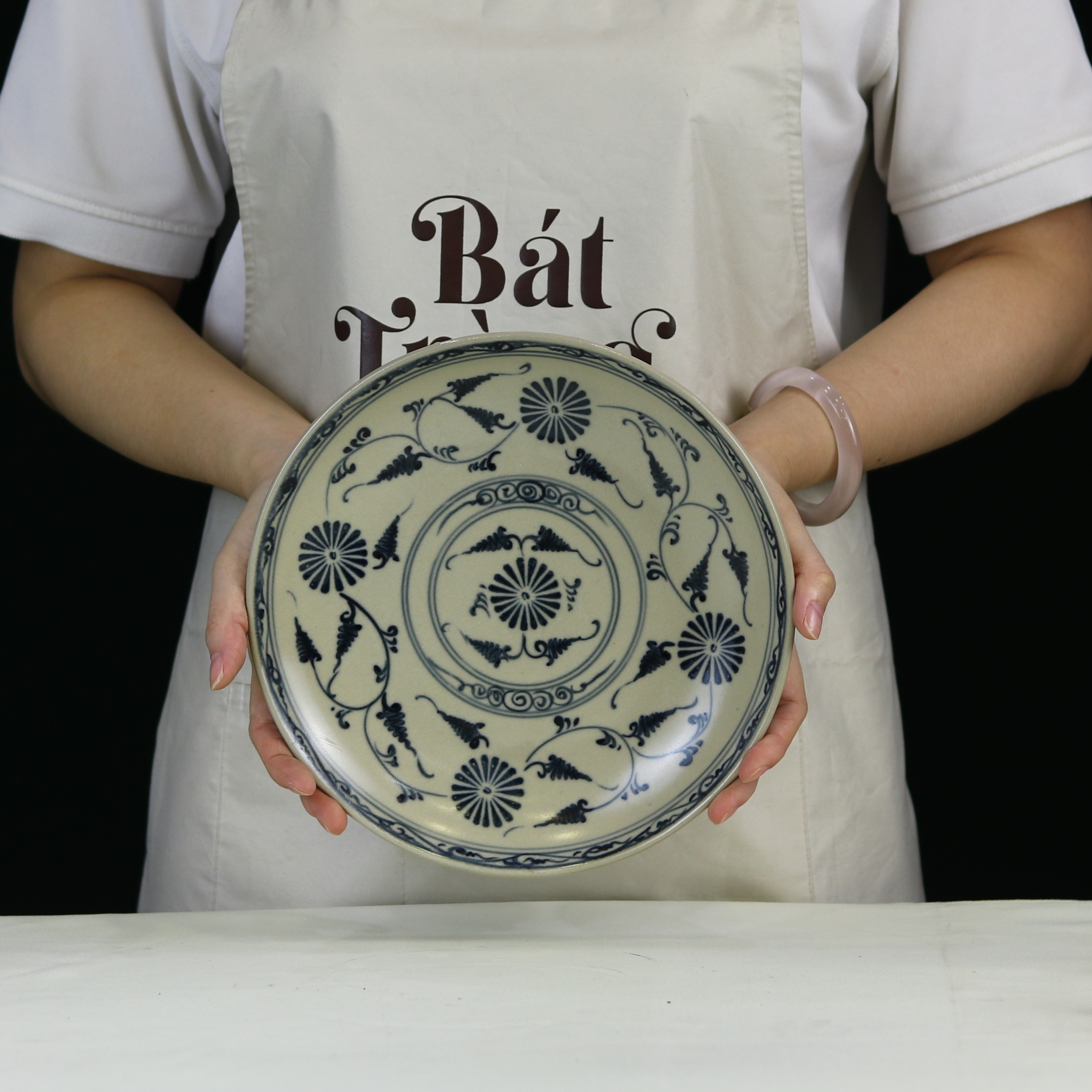 Hoa cúc, một trong Tứ Quý (Tùng – Cúc – Trúc – Mai), từ lâu đã là biểu tượng cho sự trường thọ, may mắn và thịnh vượng trong văn hóa Á Đông. Khi được khắc họa trên chiếc đĩa này, họa tiết hoa cúc dây không chỉ làm tăng thêm vẻ đẹp thanh lịch mà còn gửi gắm mong ước về một cuộc sống viên mãn, hạnh phúc cho gia chủ. Đây là lựa chọn lý tưởng để bày biện các món ăn trong những bữa cơm gia đình ấm cúng, hay nâng tầm sự trang trọng cho mâm cỗ ngày Lễ, Tết.