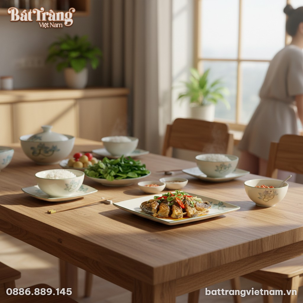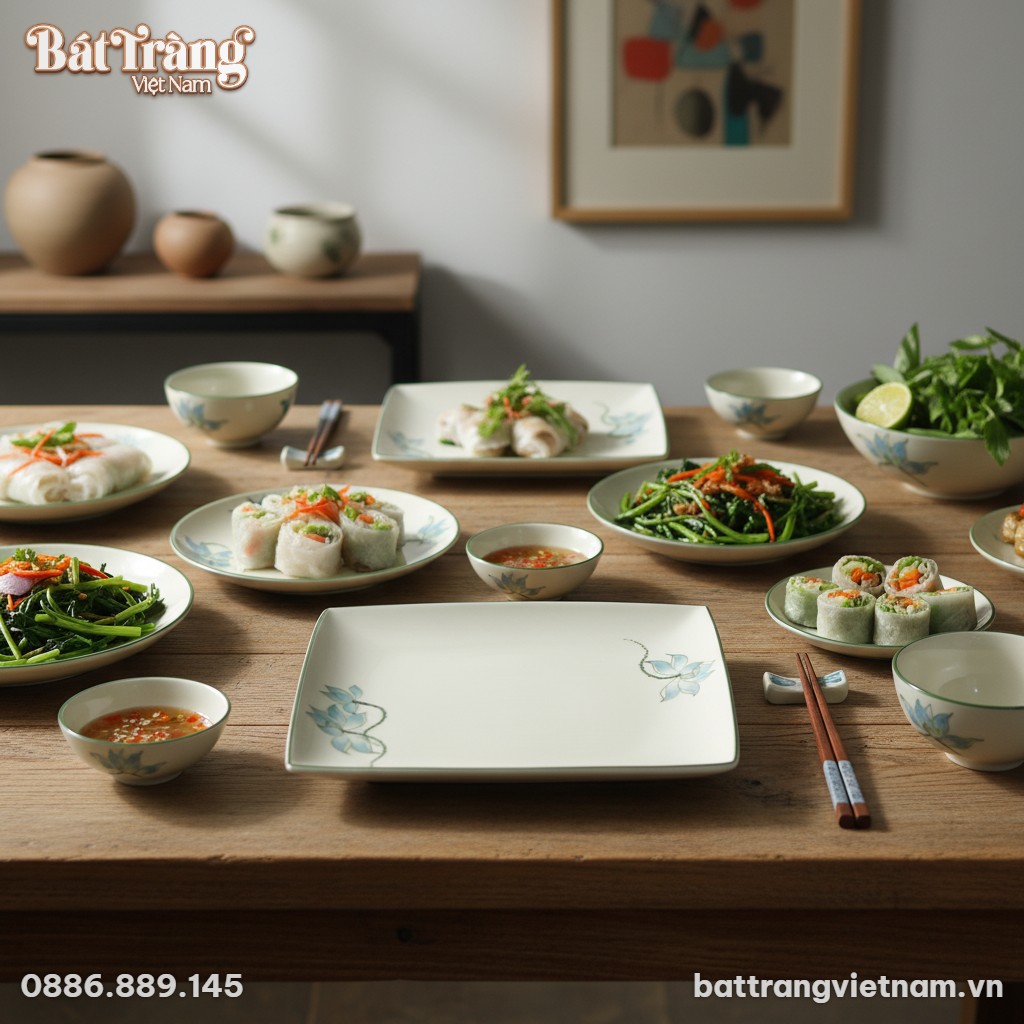Chiếc đĩa vuông sen xanh này không chỉ là một vật dụng phục vụ bữa ăn mà còn là yếu tố quan trọng giúp định hình phong cách cho không gian sống. Đối với những người phụ nữ yêu thích sự tinh tế, thanh lịch và trân trọng giá trị văn hóa truyền thống Việt Nam, sản phẩm này là một lựa chọn hoàn hảo.