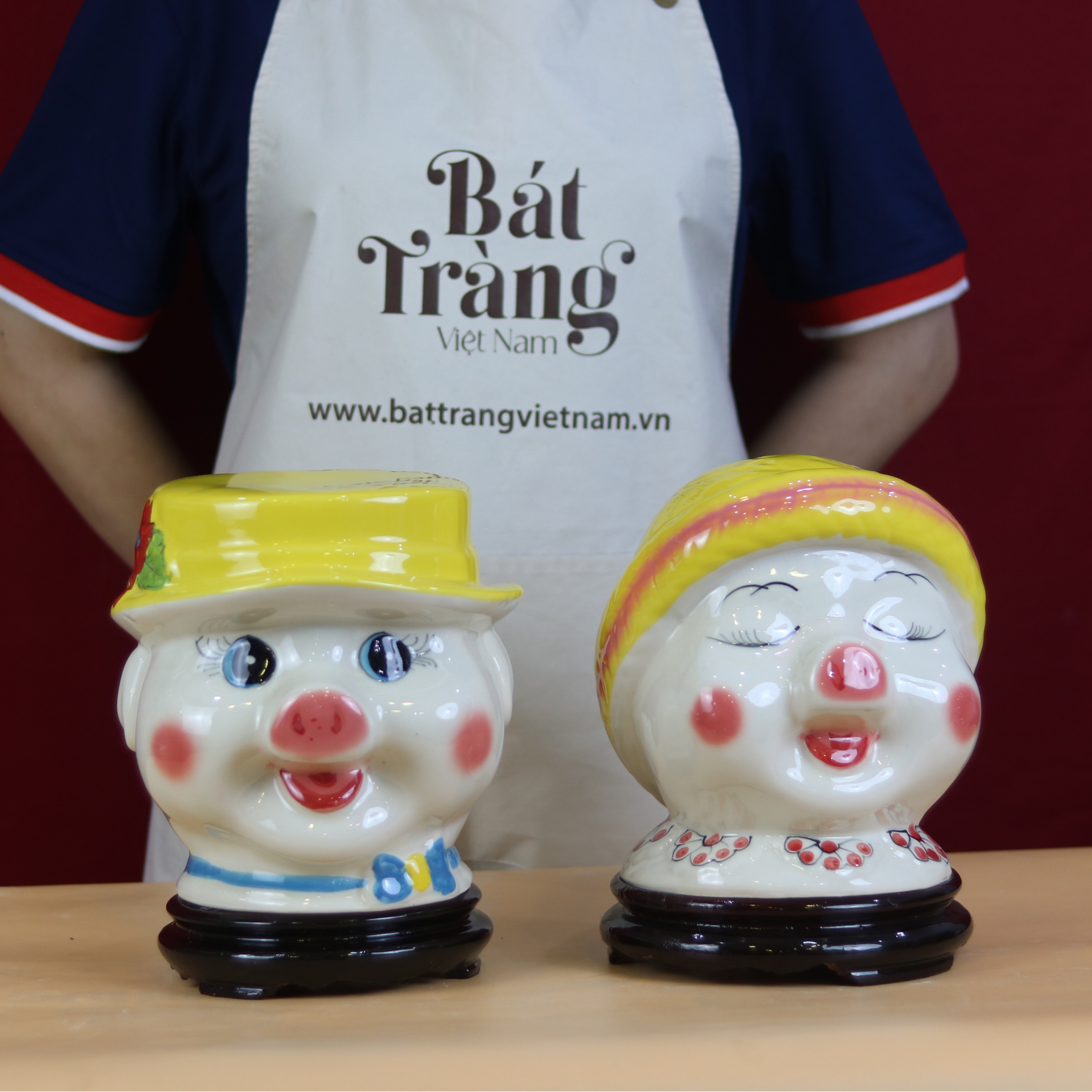 Sản phẩm Lợn đôi heo đội mũ lưỡi trai dễ thương BT_HĐ14 được chế tác từ gốm sứ Bát Tràng cao cấp, nổi tiếng với độ bền vượt trội và tính thẩm mỹ tinh xảo. Kích thước Cao 20cm x Rộng 20cm rất phù hợp để đặt trên bàn học, kệ sách hay bất kỳ góc nhỏ nào trong nhà.