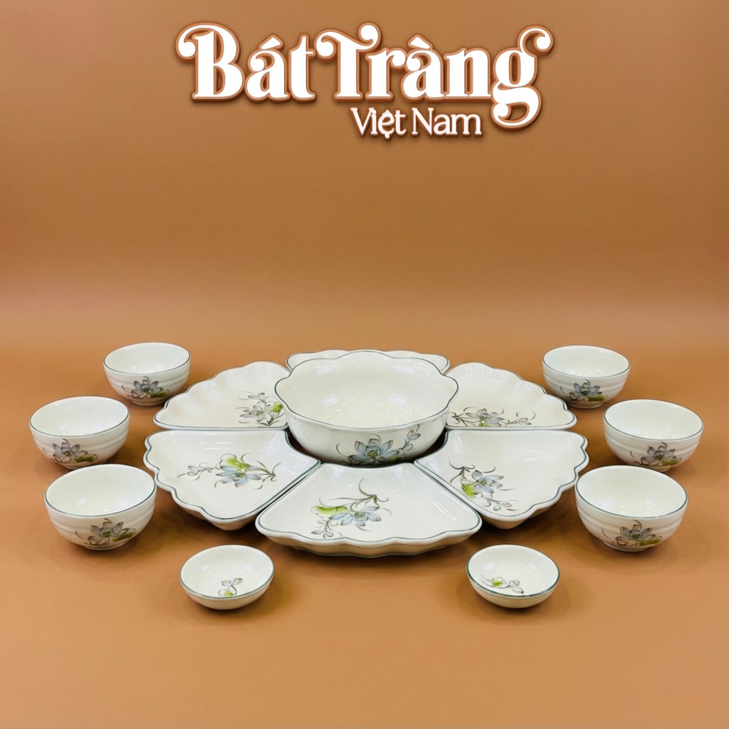 Bộ sản phẩm này sẽ làm đẹp thêm những bữa cơm gia đình ấm cúng hằng ngày, và là điểm nhấn tinh tế cho các dịp đặc biệt như tiệc tùng, liên hoan, hay mâm cỗ cúng gia tiên. Sự sắp xếp chỉn chu của bộ bát đĩa thắp hương dáng bông hoa thể hiện lòng hiếu thảo và sự trang nghiêm đối với tổ tiên.