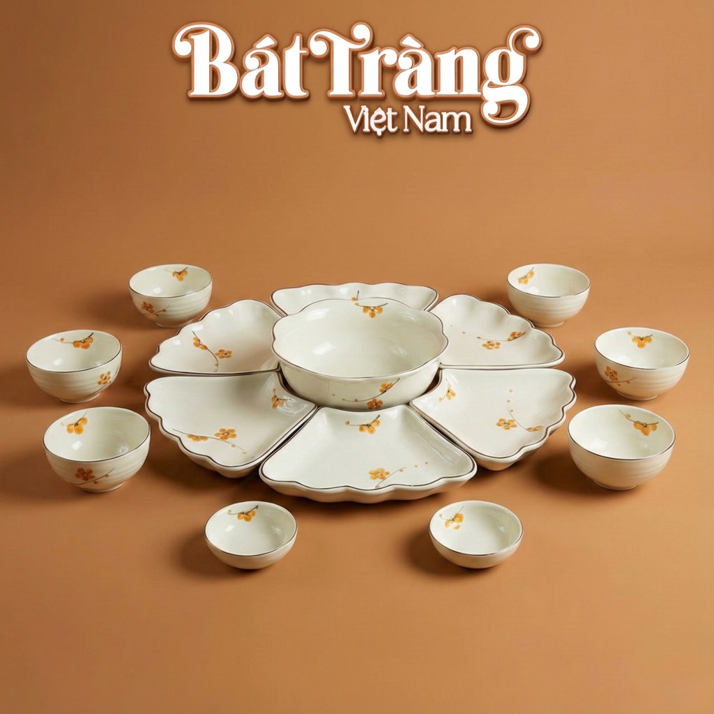 Sự sắp xếp này kết hợp hài hòa giữa tính thẩm mỹ cao và công năng vượt trội, giúp việc bày biện nhiều món ăn trên mâm cỗ trở nên gọn gàng, đẹp mắt và sang trọng hơn bao giờ hết. Đây chính là nét tinh tế mà mỗi bộ bàn ăn hoa mặt trời của Gốm Bát Tràng Việt Nam muốn gửi gắm.