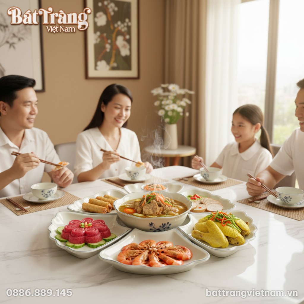 Bộ bát đĩa này là biểu tượng của sự sum vầy, thịnh vượng, mang đến hơi thở truyền thống và nét thanh lịch cho mỗi bữa cơm gia đình. Vượt lên trên ý nghĩa một vật dụng đơn thuần, nó đặc biệt tỏa sáng trong các dịp lễ tết hay mâm cỗ cúng gia tiên.