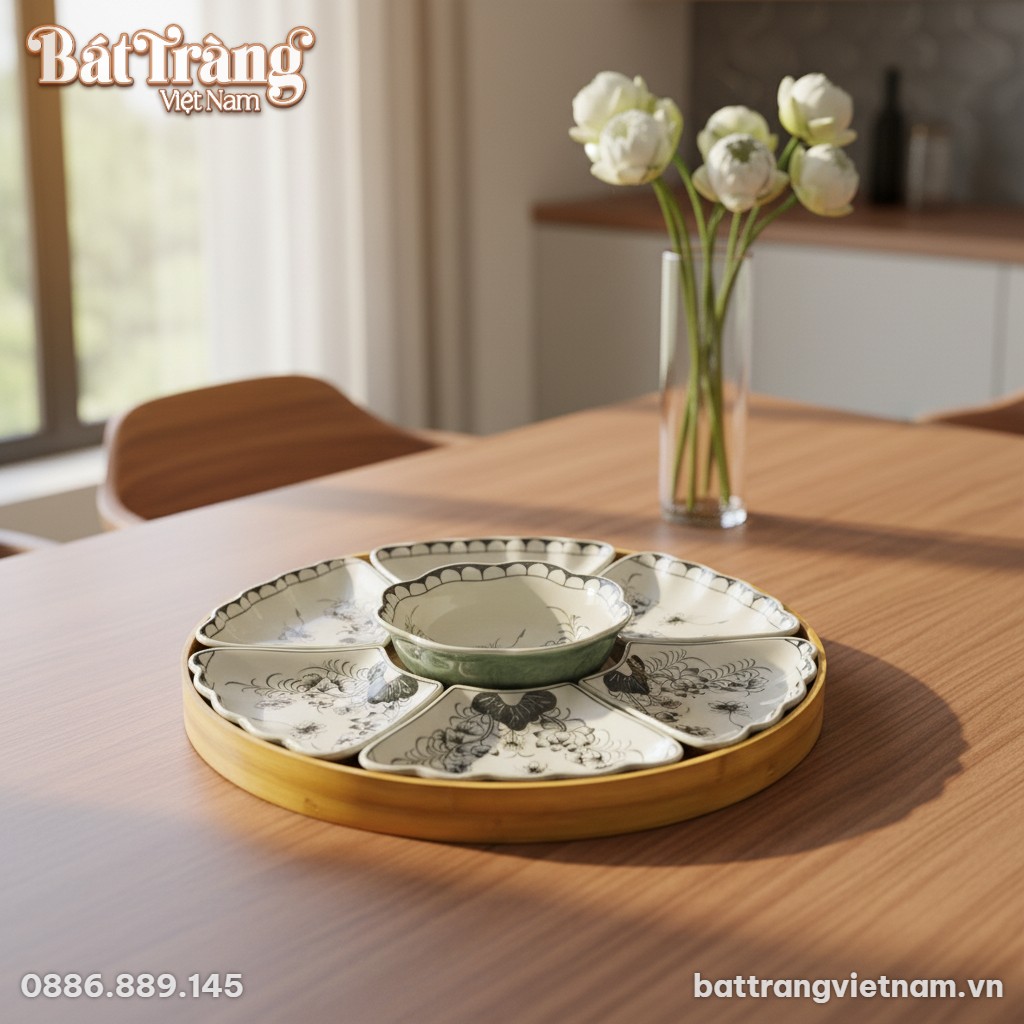Bộ bát đĩa này là lựa chọn hoàn hảo cho những gia đình truyền thống, yêu thích văn hóa Việt và thường xuyên tổ chức các bữa tiệc sum họp. Nó giúp việc bày trí mâm cỗ truyền thống trở nên gọn gàng, đẹp mắt và sang trọng hơn bao giờ hết, dễ dàng phân chia các món mặn, xào, nộm hay canh mà vẫn giữ được tính thẩm mỹ tổng thể.