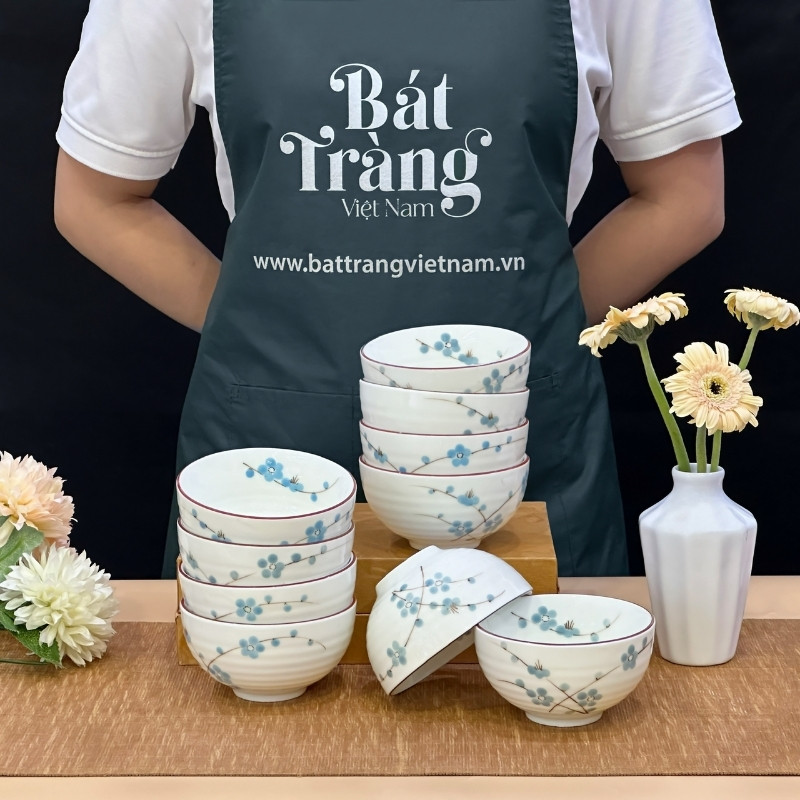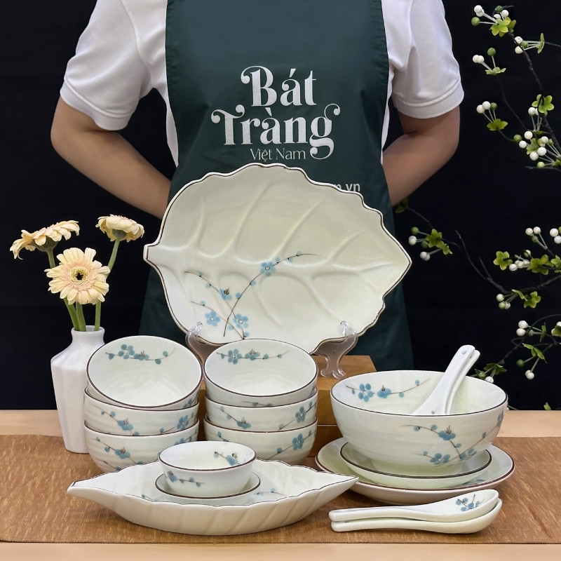Bộ bát đĩa hoa đào xanh với chất liệu gốm sứ cao cấp