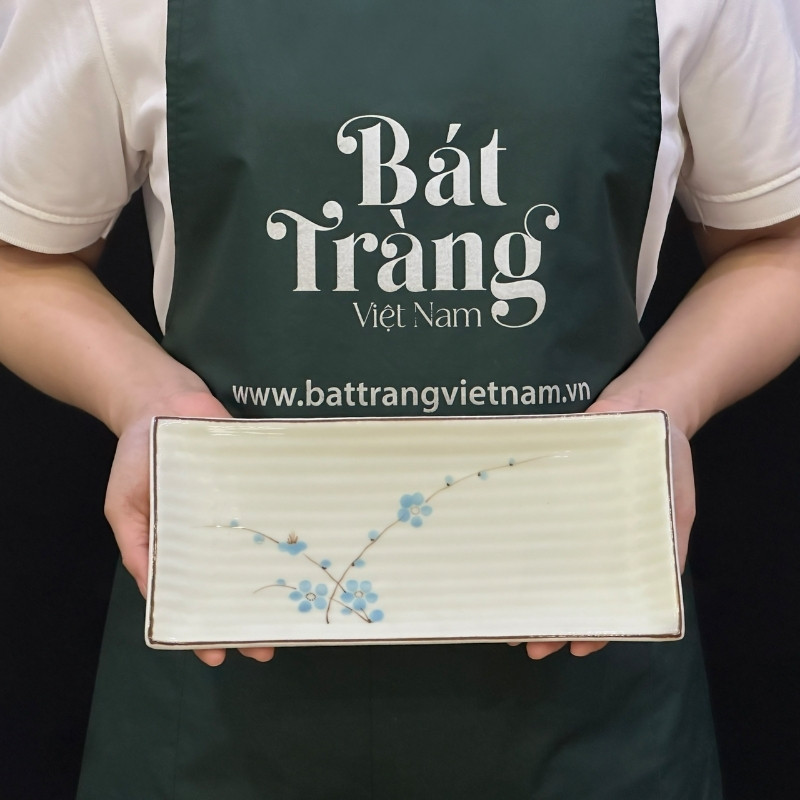 | Tên | Bộ bát đĩa sứ trắng họa tiết đào xanh Bát Tràng | Kích thước | |