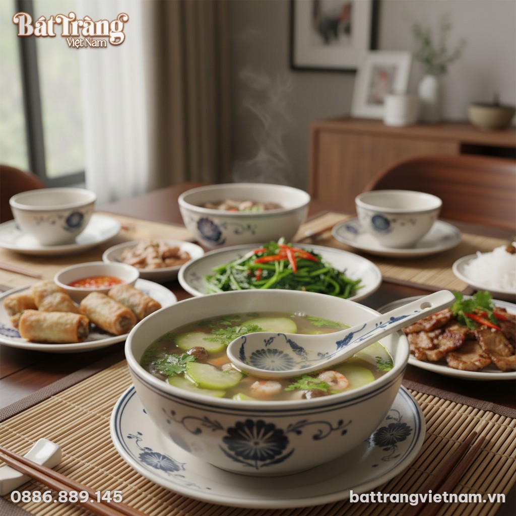 Nét Duyên Dáng Của Gốm Sứ Bát Tràng Trên Bàn Ăn Việt