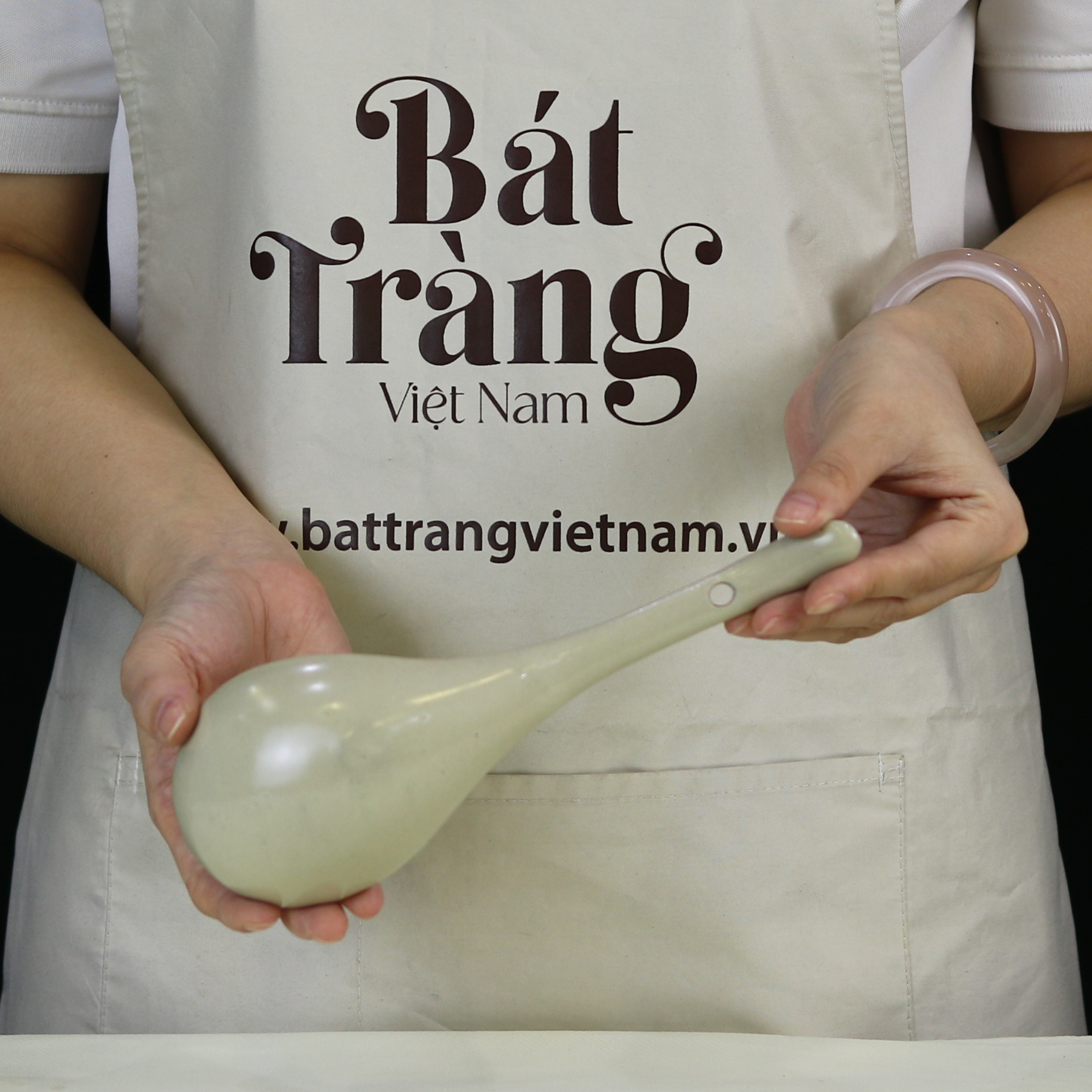 Chiếc thìa này không chỉ là một vật dụng dùng để múc cơm và canh mà còn là một phần của trải nghiệm ẩm thực. Với dáng thìa sâu lòng và cán cong nhẹ, nó mang lại cảm giác cầm nắm thoải mái và tiện dụng. Trong bữa cơm gia đình, sự hiện diện của những vật dụng gốm sứ Bát Tràng như thế này tạo nên không khí ấm cúng, gần gũi và đầy đủ giá trị truyền thống.