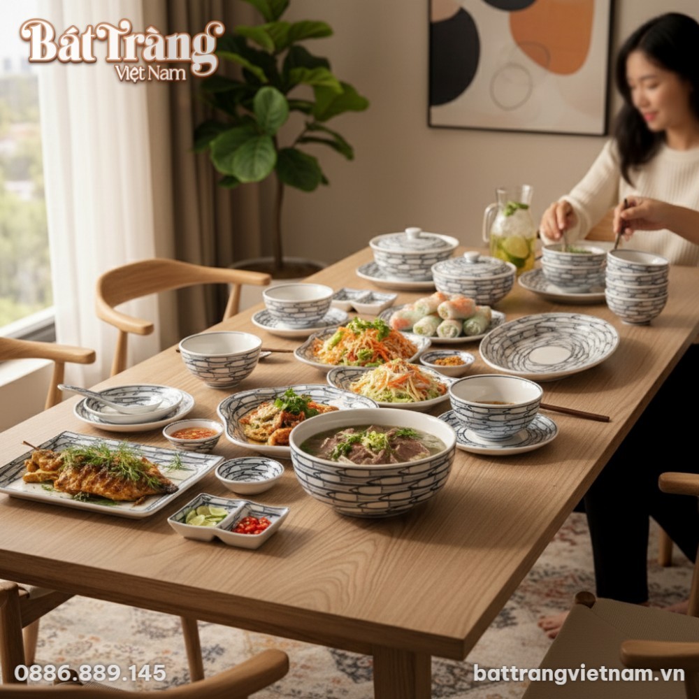 Để tạo nên một mâm cỗ ngày Lễ, Tết thật sự chu toàn và ấn tượng, việc lựa chọn bát đĩa phù hợp là vô cùng quan trọng. Bộ sản phẩm An Gia BD-59 với các kích thước và hình dáng đa dạng, từ đĩa lớn đựng món chính đến chén nhỏ đựng gia vị, giúp gia chủ dễ dàng bài trí, sắp xếp, thể hiện sự khéo léo và tấm lòng hiếu khách. Đây là một đại diện tiêu biểu cho dòng sản phẩm gốm sứ Bát Tràng mang tính ứng dụng cao, đáp ứng cả yếu tố thẩm mỹ lẫn công năng.