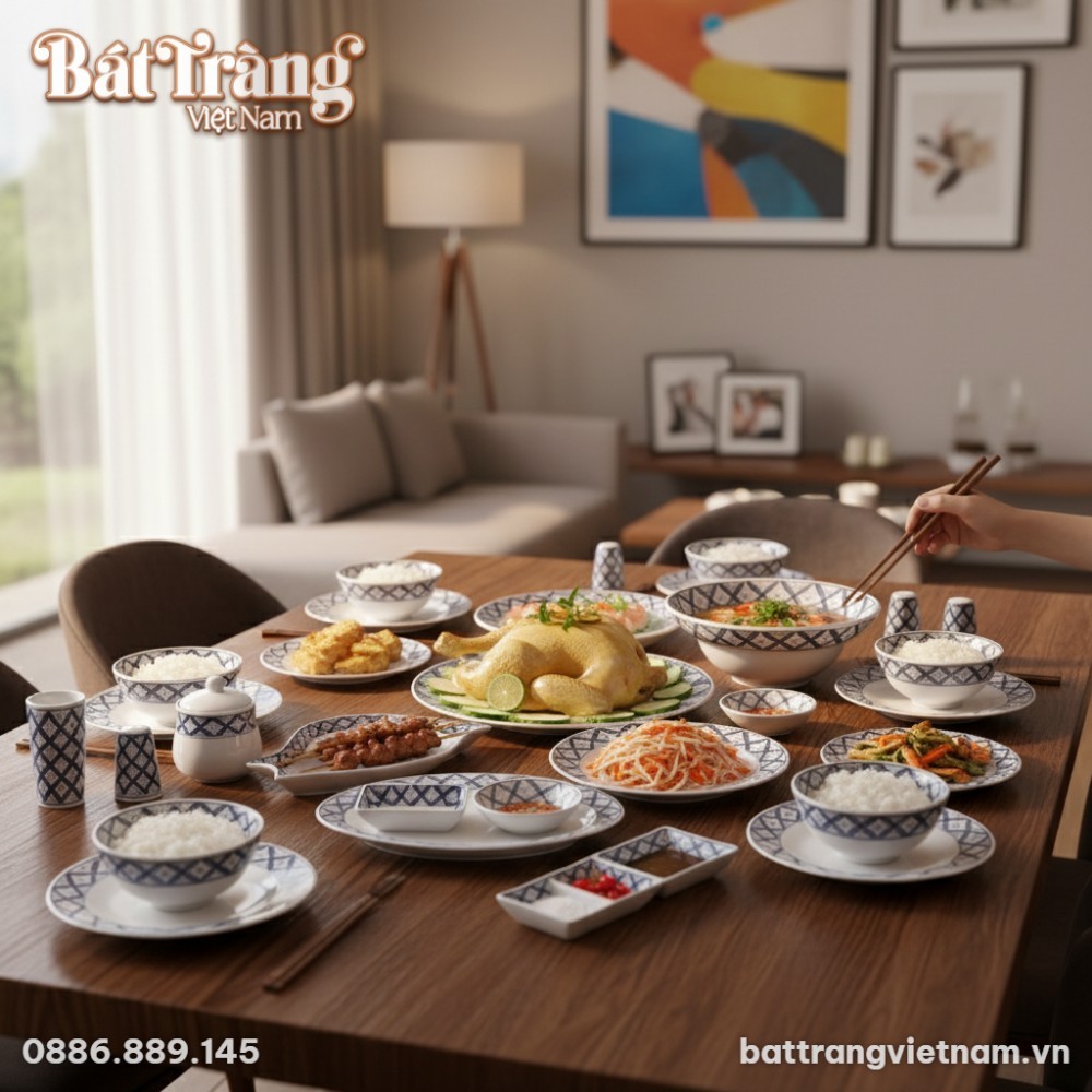 Trong văn hóa ẩm thực Việt, bộ bát đĩa giữ vai trò quan trọng, không chỉ là vật dụng mà còn là điểm nhấn thể hiện gu thẩm mỹ và sự chu toàn của gia đình. Gốm Bát Tràng Việt Nam tự hào giới thiệu bộ bát đĩa BD-70, một minh chứng cho sự kết hợp hài hòa giữa nét đẹp truyền thống và hơi thở hiện đại, phù hợp với mọi không gian sống.