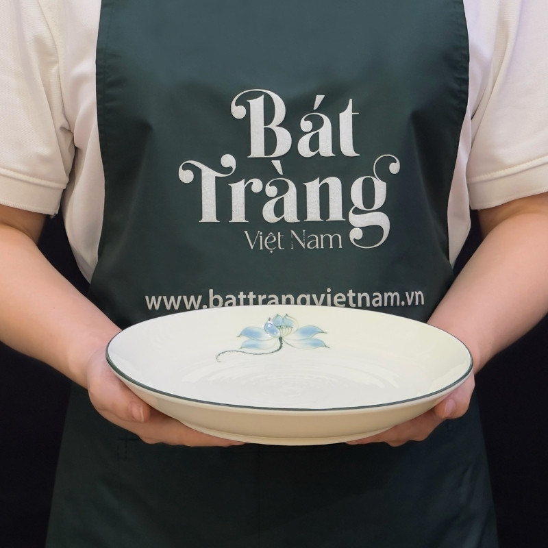 | Tên | Bộ bát đĩa sứ trắng họa tiết hoa sen xanh Bát Tràng | Kích thước | |