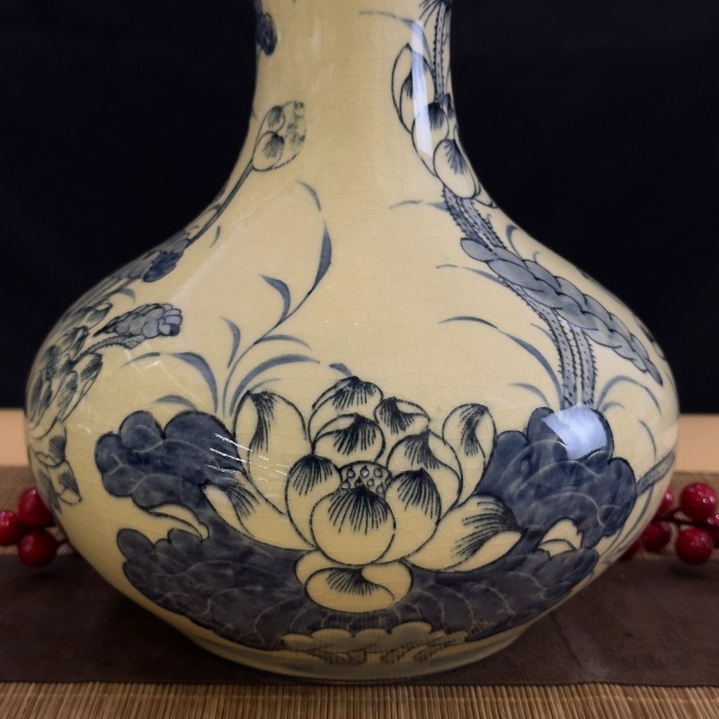 Bình tỏi tài lộc Bát Tràng men hanh vàng họa tiết hoa sen khá là được săn đón trên thị trường. Bởi khi trưng bày chúng trong nhà sẽ thu hút được lộc, tiền tài cho gia chủ.