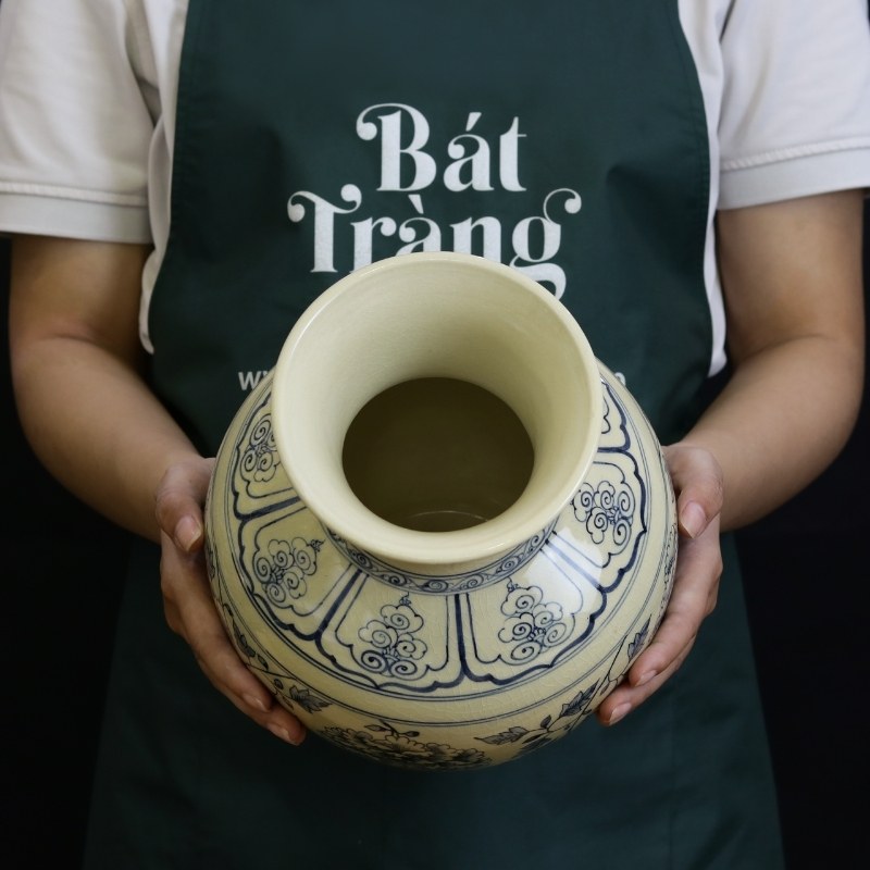 Bình trường phúc Bát Tràng được chế tác hoàn toàn thủ công bằng tay, từng chi tiết được chăm chút tỉ mỉ, tinh xảo dưới đôi bàn tay tài hoa của người thợ.