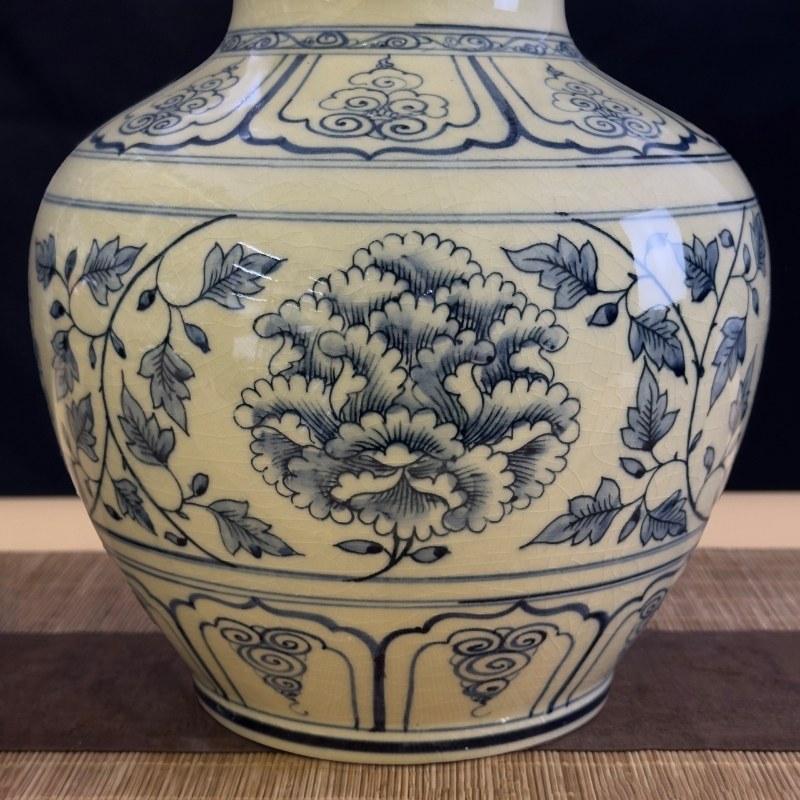 Tên Bình trường phúc Bát Tràng men hanh vàng họa tiết hoa phù dung Kích thước