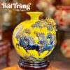 Sắc men vàng bao phủ toàn bộ thân bình, tượng trưng cho sự giàu sang, thịnh vượng và quyền lực. Lớp men sứ cao cấp sáng bóng, bền màu vĩnh cửu với thời gian lại mang lại giá trị thẩm mỹ cao.