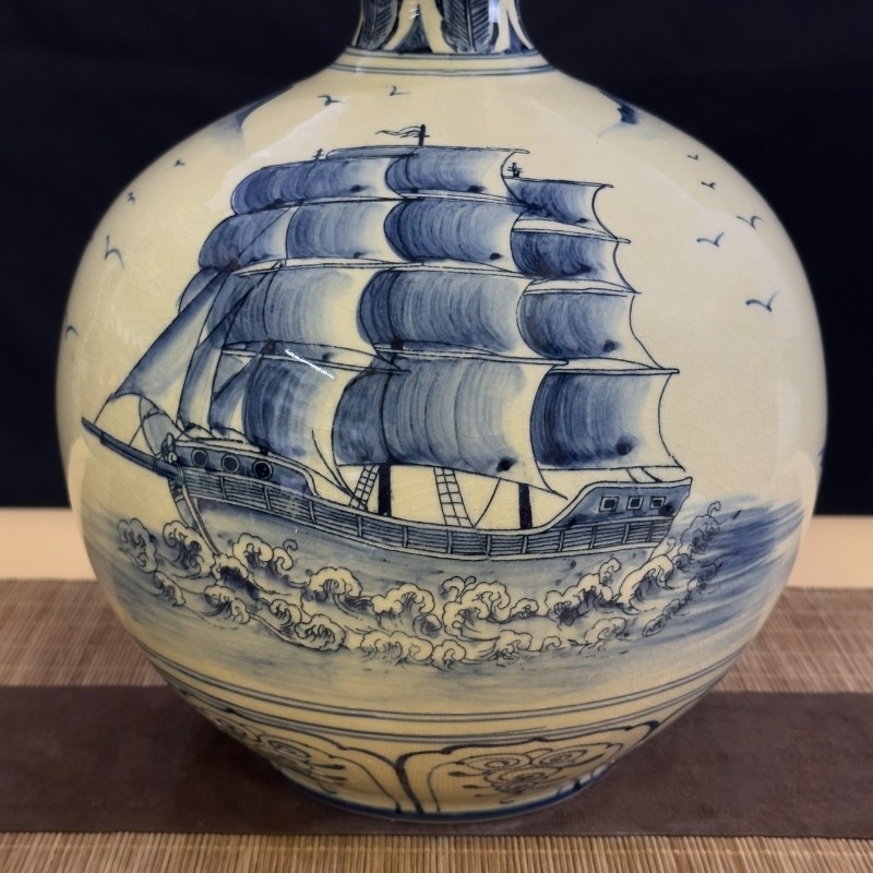 Bình hút lộc Bát Tràng men hanh vàng họa tiết thuận buồm xuôi gió là vật dụng được dùng để trang trí, trưng bày cho không gian của bạn thêm sang trọng, mới mẻ.