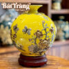 Sắc men vàng hoàng gia bao phủ toàn bộ thân bình, tạo nên vẻ ngoài rực rỡ, sang trọng và quyền quý. Lớp men sứ cao cấp có độ bóng đẹp, bền màu vĩnh cửu, không chỉ làm tăng giá trị thẩm mỹ mà còn giúp việc lau chùi trở nên dễ dàng.
