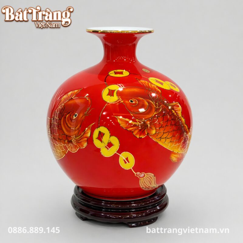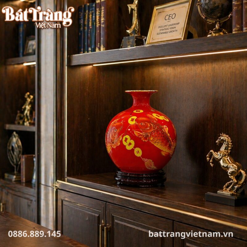 - Men đỏ rực rỡ: Lớp men đỏ bao phủ toàn thân bình không chỉ tạo nên vẻ ngoài sang trọng, mà còn tượng trưng cho may mắn, tài lộc và năng lượng tích cực, xua đi mọi điều không may.