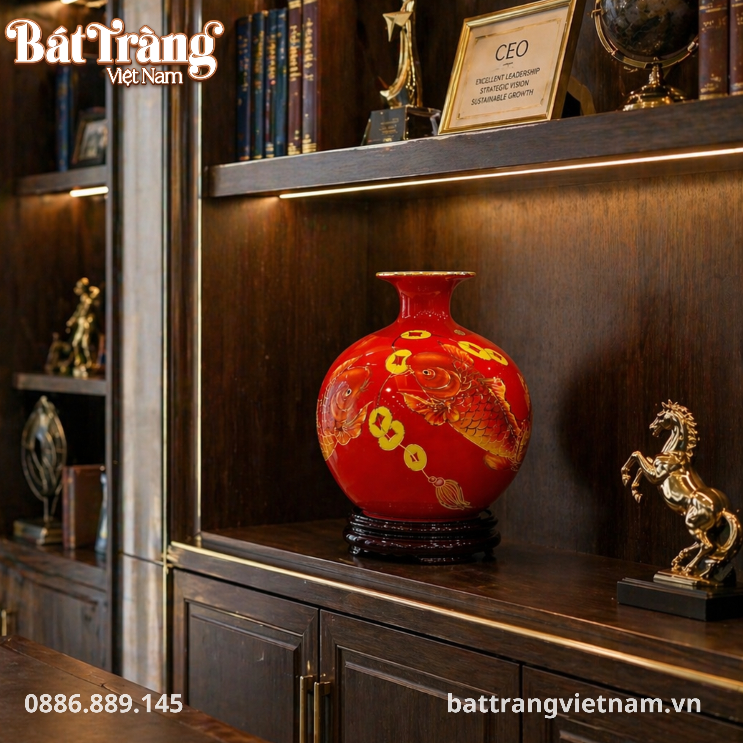 Bình hút lộc niên niên hữu dư vẽ vàng 24k BT-BHL98 là một tuyệt tác nghệ thuật từ làng nghề gốm sứ Bát Tràng danh tiếng, hiện thân cho sự thịnh vượng và đẳng cấp. Trong dòng chảy không ngừng của các vật phẩm phong thủy, những chiếc bình hút lộc luôn giữ vị thế đặc biệt, trở thành điểm nhấn tinh tế thu hút vượng khí cho mọi không gian.