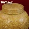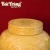Ngay khi chạm tay vào chum, bạn sẽ cảm nhận được độ đầm chắc của cốt gốm dày dặn, bề mặt men nâu vàng đất bóng mịn, ấm áp. Điều đặc biệt nhất chính là sự gồ lên sống động của từng họa tiết được đắp nổi hoàn toàn thủ công.