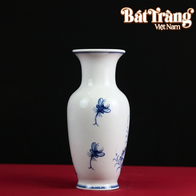 Lọ hoa khoác lên mình lớp men lam bóng mịn đặc trưng của gốm sứ Bát Tràng, mang lại vẻ đẹp thanh khiết và dễ dàng vệ sinh.