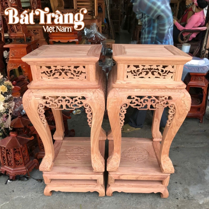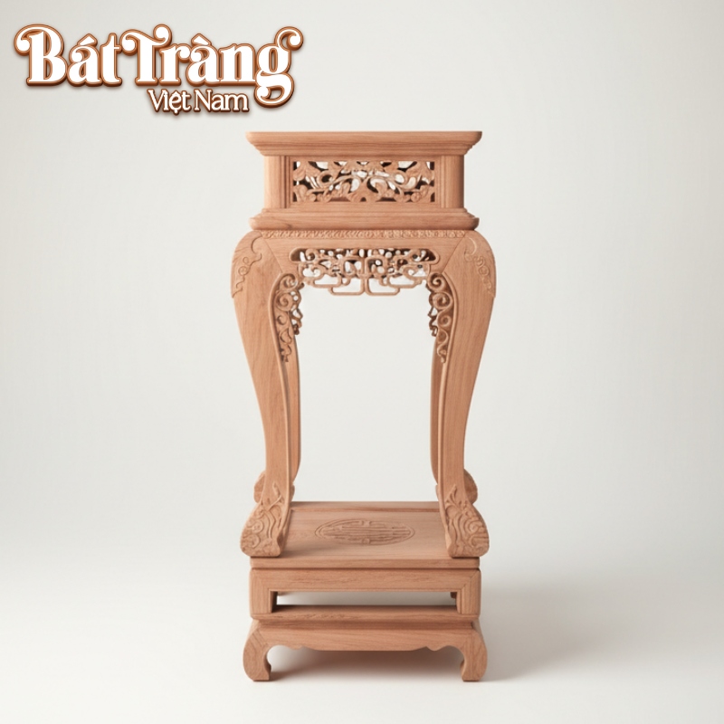 - Mặt trên: Được nghệ nhân gia công phẳng phiu với đường viền bo gờ nhẹ nhàng, bảo đảm sự vững chãi cho những vật phẩm tiêu điểm như tượng sứ hay bình tỳ bà cao lớn. Cao độ này giúp đưa món đồ trưng bày lên tầm nhìn trung tâm, làm nổi bật những đường nét nghệ thuật của gốm sứ trong không gian tiếp khách.