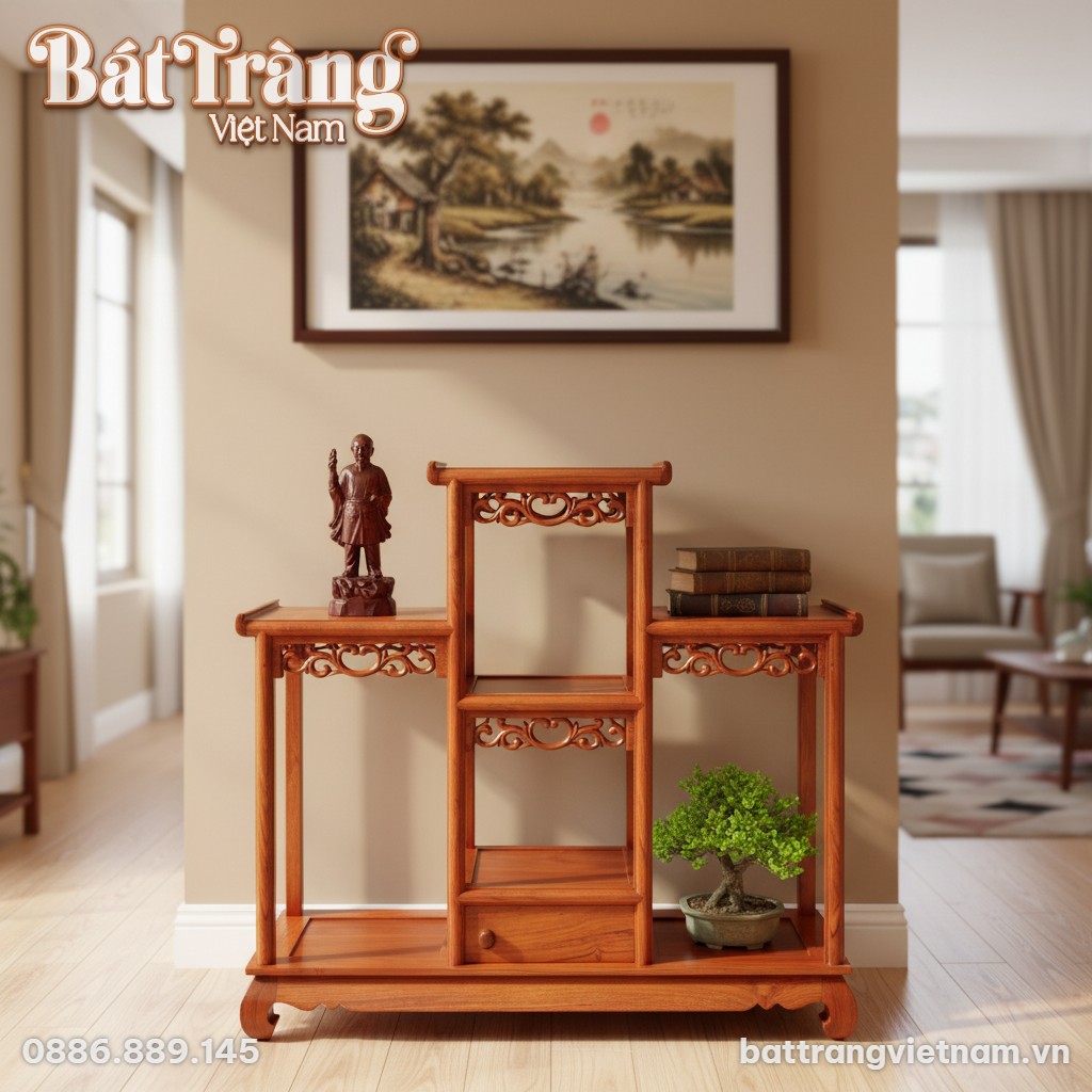 Đội ngũ của Gốm Bát Tràng Việt Nam luôn sẵn sàng tư vấn tận tâm để giúp bạn chọn lựa được mẫu kệ gỗ phù hợp nhất với diện tích và phong cách nội thất của gia đình, giúp nâng tầm không gian sống bằng những giá trị mỹ nghệ bền vững.