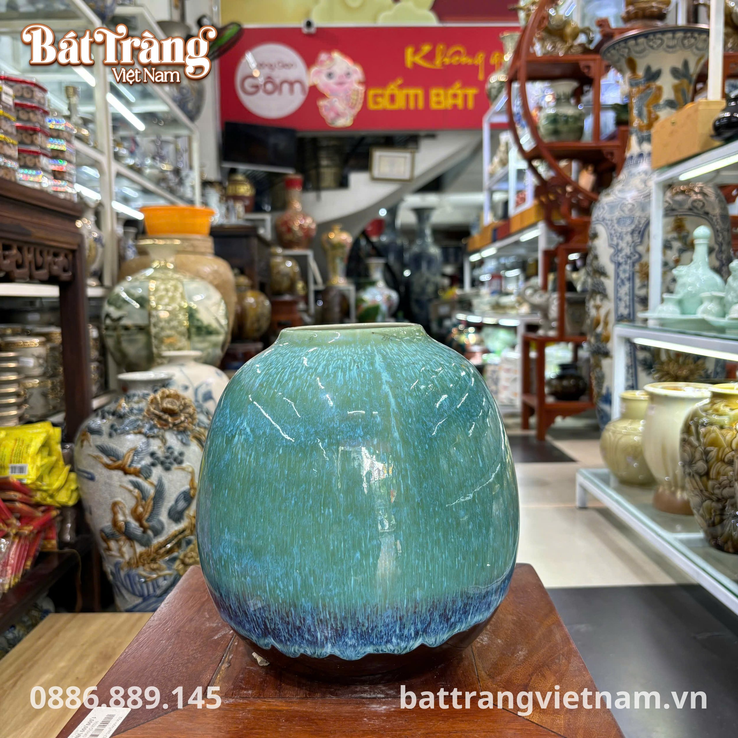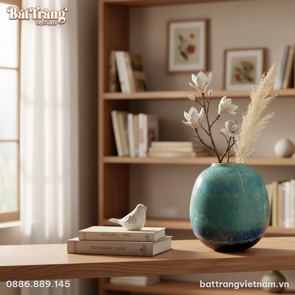 Lọ hoa dáng lu màu xanh ngọc men hoả biến BT-LHS15 là một kiệt tác gốm sứ Bát Tràng, nơi nghệ thuật chế tác và vẻ đẹp tự nhiên hòa quyện tinh xảo. Sản phẩm này không chỉ là một vật dụng cắm hoa mà còn là một điểm nhấn nghệ thuật độc đáo, mang đến sự thanh lịch và tinh tế cho mọi không gian sống hiện đại.