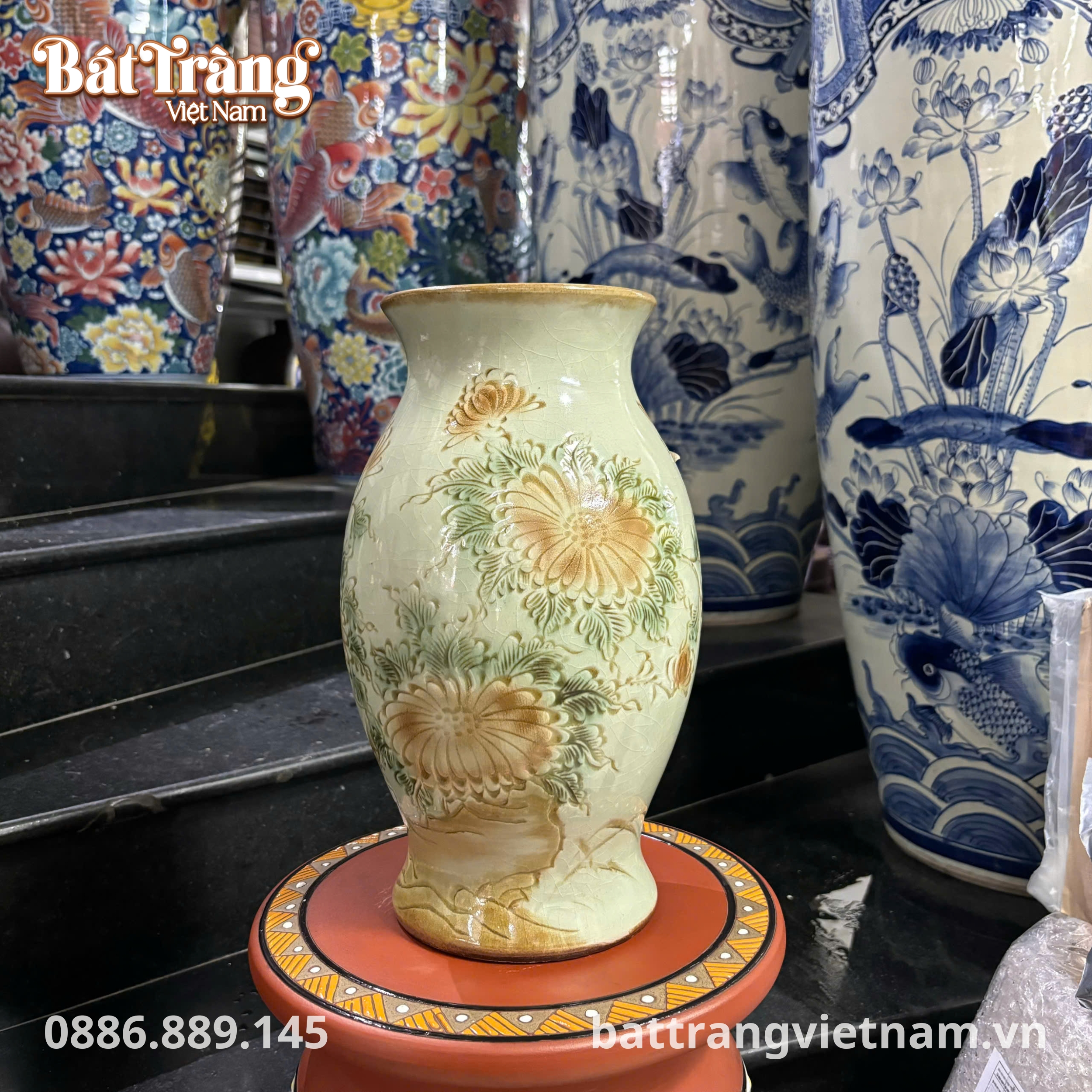 Tại battrangvietnam.vn, chúng tôi cam kết mang đến những sản phẩm gốm sứ Bát Tràng chính gốc, được tuyển chọn kỹ lưỡng và vận chuyển trực tiếp từ xưởng. Mỗi chiếc Lọ hoa men ngọc khắc nổi hoa phù dung BT-LHS01 đều là kết quả của quá trình sản xuất nghiêm ngặt, đảm bảo chất lượng hoàn hảo khi đến tay quý khách.