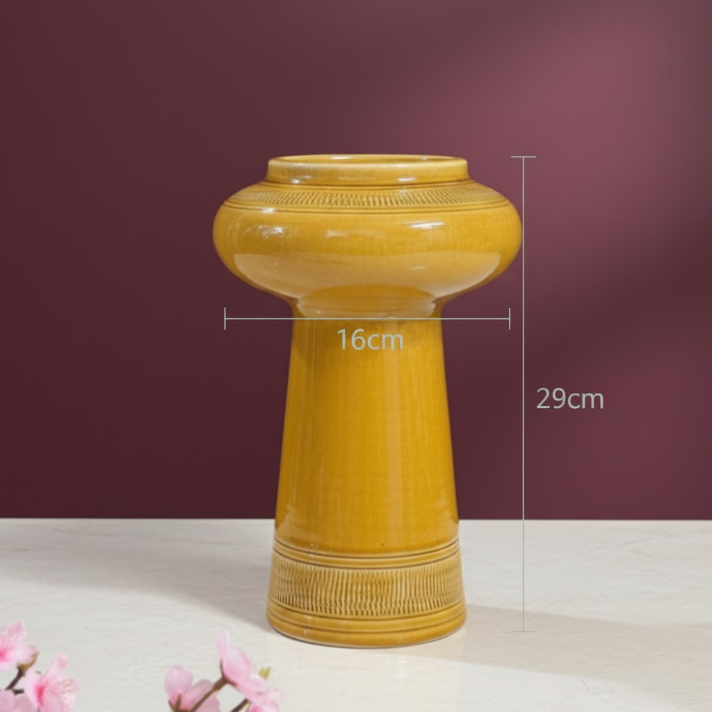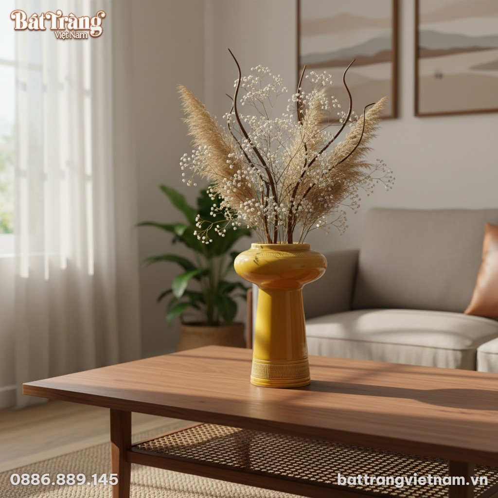 Không chỉ là một vật trang trí độc lập, Lọ hoa men vàng nâu dáng đôn nấm BT-LHS43 còn là lựa chọn lý tưởng để cắm các loại hoa, từ hoa tươi rực rỡ đến hoa khô thanh lịch. Hãy thử kết hợp với những cành hoa ly vàng, hoa hướng dương, hoặc đơn giản là một bó hồng cam để tôn lên vẻ đẹp của cả lọ và hoa, mang lại sự tươi mới và sức sống cho không gian. Sự kết hợp này biến chiếc lọ thành tâm điểm của mọi ánh nhìn.