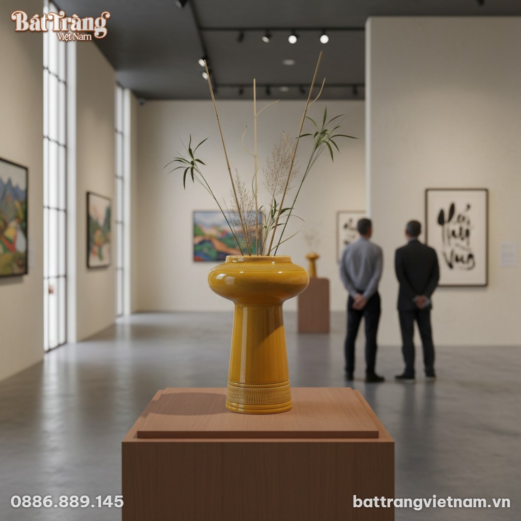 Lọ hoa men vàng nâu dáng đôn nấm BT-LHS43 là một tác phẩm nghệ thuật độc đáo, kết hợp hài hòa giữa nét cổ điển và hơi thở hiện đại, mang đậm dấu ấn của làng nghề gốm sứ Bát Tràng danh tiếng. Trong thế giới của lọ hoa trang trí, mẫu bình này nổi bật với vẻ đẹp tinh tế, gợi cảm giác ấm cúng và sang trọng, lý tưởng để kiến tạo nên những không gian sống đẳng cấp, tràn đầy cảm hứng.