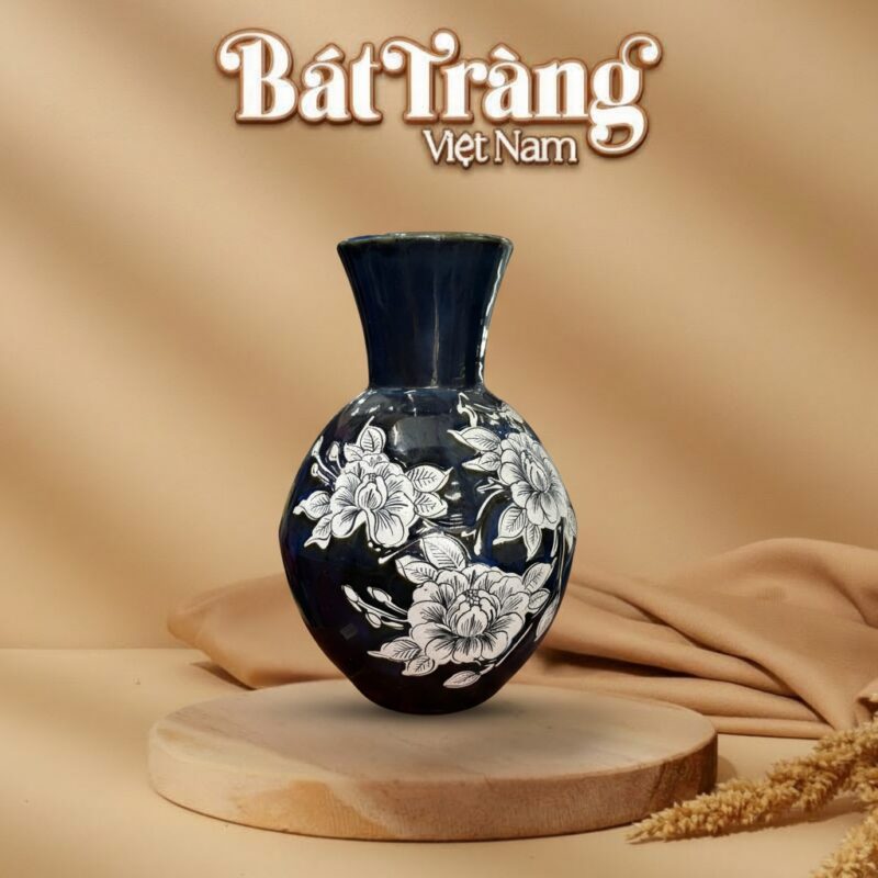 Lọ lộc bình vẽ hoạ tiết vẽ hoa xanh đen BT-LHS19 là một tuyệt tác nghệ thuật từ làng gốm Bát Tràng, nơi tinh hoa thủ công truyền thống hòa quyện cùng phong cách thiết kế hiện đại.