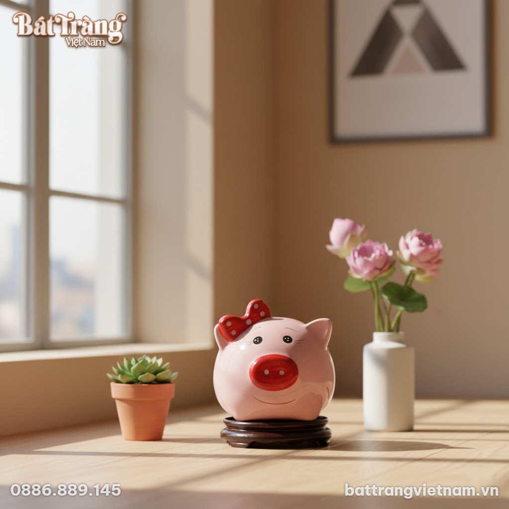 Ống tiết kiệm heo hồng đeo nơ BT-HĐ12 không chỉ là một vật phẩm trang trí đáng yêu mà còn là khởi đầu cho những bài học quý giá về giá trị của đồng tiền và ước mơ. Trong dòng sản phẩm Ống heo tiết kiệm gốm sứ của Gốm Bát Tràng Việt Nam, chú heo hồng này nổi bật với vẻ ngoài ngộ nghĩnh, vui tươi, sẵn sàng trở thành người bạn đồng hành thân thiết của mỗi đứa trẻ trên hành trình vun đắp tương lai.