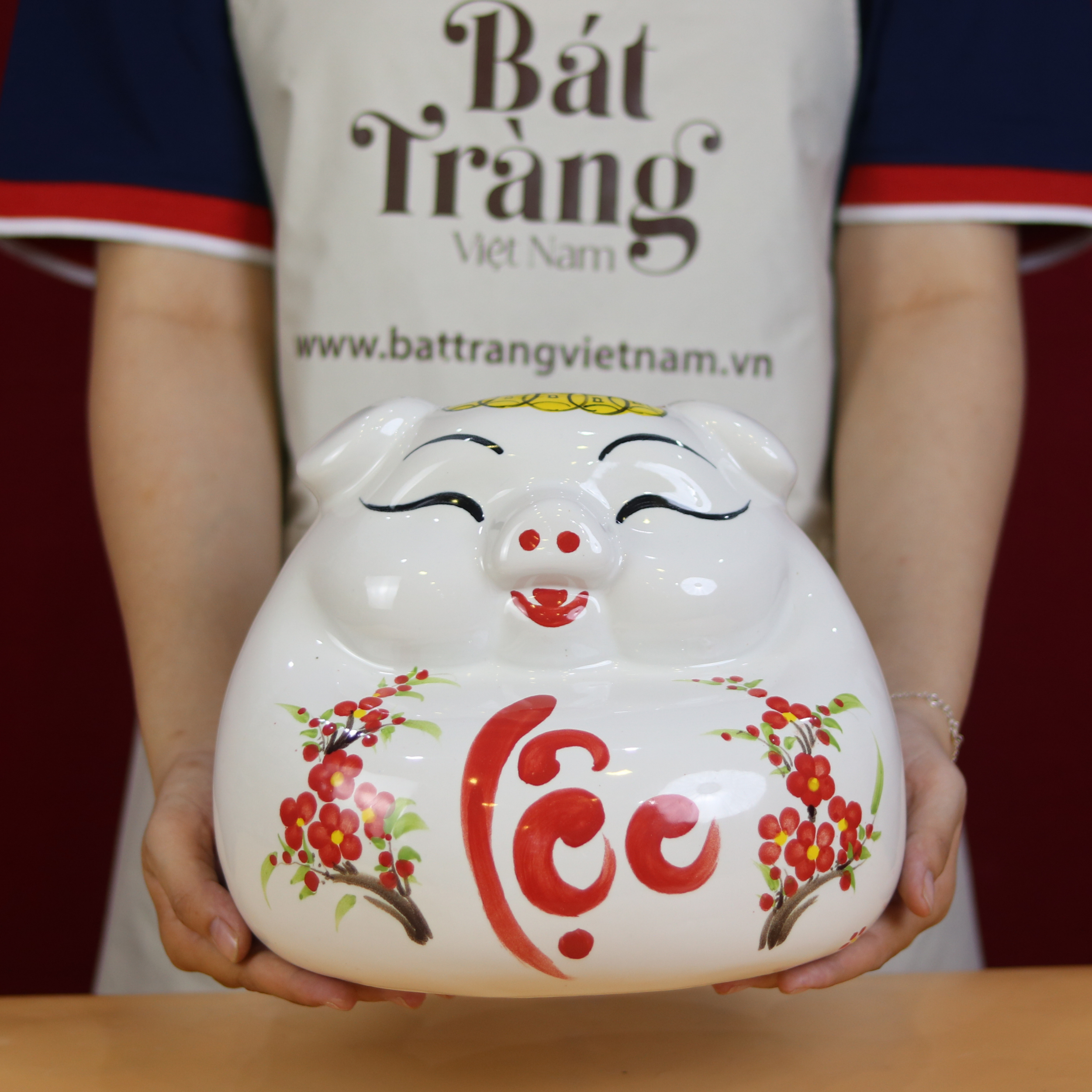 Trong đa dạng dòng heo đất tiết kiệm gốm sứ Bát Tràng, chú heo này nổi bật với dáng vẻ phúc hậu, nụ cười tươi tắn và thông điệp tài lộc dồi dào, mang đến không khí ấm cúng và may mắn cho mọi gia đình Việt.