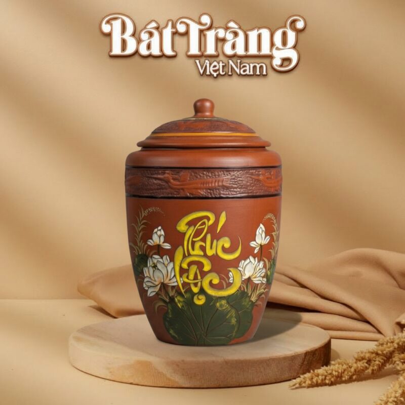 Sản phẩm thuộc dòng hũ đựng gạo gốm sứ cao cấp của gốm sứ Bát Tràng, được chế tác tỉ mỉ, gửi gắm ước vọng về sự no đủ, may mắn và thịnh vượng cho mọi gia đình Việt.