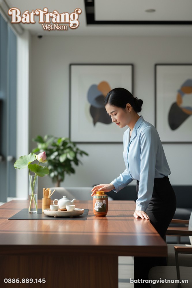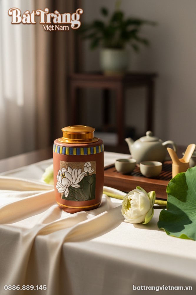 Trong văn hóa trà đạo Việt, việc bảo quản trà luôn được xem trọng, và những chiếc hũ đựng trà Bát Tràng chính là lựa chọn hàng đầu. Chúng là đồ vật chứa đựng góp phần giữ trọn vẹn hương thơm, sắc vị của từng búp trà qua thời gian. Hơn nữa, mỗi chiếc hũ còn là một câu chuyện về sự khéo léo, tinh hoa của người nghệ nhân.