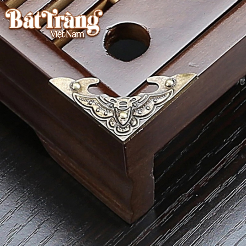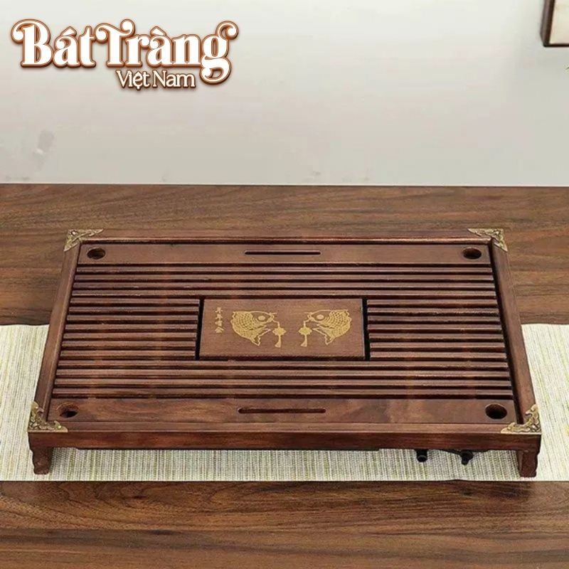 Mẫu khay đựng trà này sở hữu tông màu nâu sẫm trầm mặc, kết hợp cùng các chi tiết kim loại đồng điểm xuyến tinh tế. Đây không chỉ là một trà cụ thông thường mà còn là vật phẩm phong thủy giúp cân bằng sinh khí, thu hút tài lộc cho không gian thưởng trà của bạn.