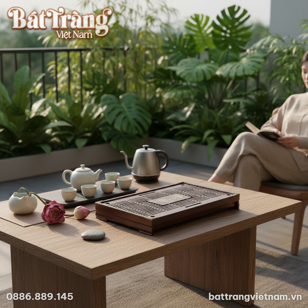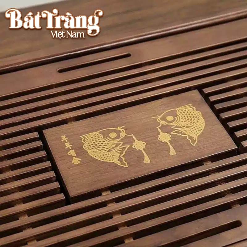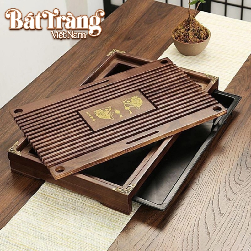 Lòng chứa nước bên dưới làm từ vật liệu bền bỉ, chịu nước tốt, đảm bảo không rò rỉ và giữ cho mặt bàn trà của bạn luôn sạch sẽ. Sự chỉn chu trong từng đường gờ và rãnh thoát nước giúp khay giữ được vẻ đẹp sắc nét, phục vụ tốt nhu cầu thưởng trà nhàn nhã mỗi ngày.