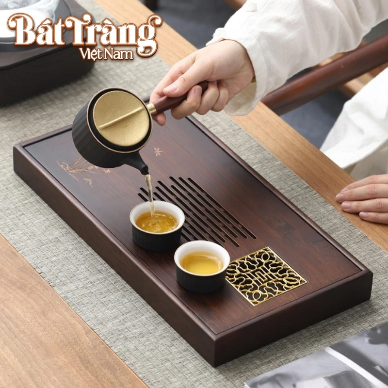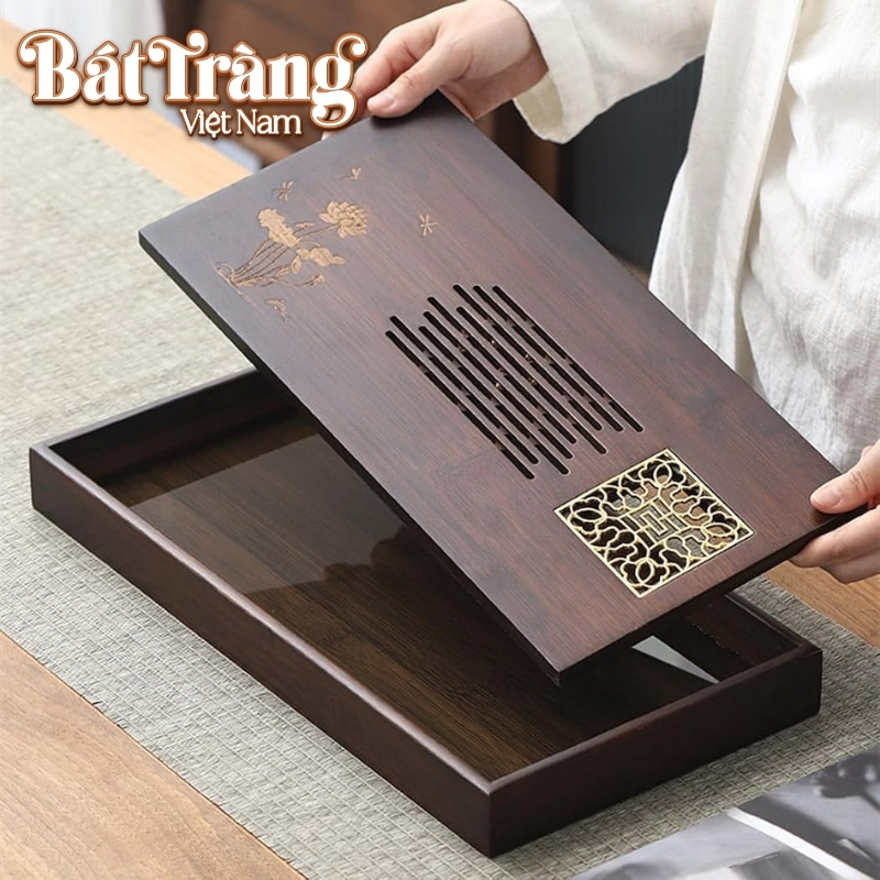 - Khoang chứa nước: Phần lòng khay bên dưới có độ sâu vừa phải, đủ để thu gom nước trà thừa trong suốt buổi đàm đạo, giúp mặt bàn của quý khách luôn khô ráo và thoáng đãng.