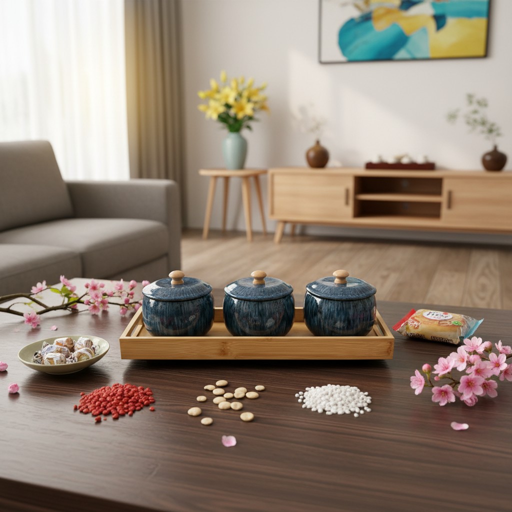 Khay mứt sứ Bát Tràng men hỏa biến xanh – Set 3 hũ mứt kèm khay gỗ là một lựa chọn thông minh, mang đến vẻ đẹp tinh tế và giá trị bền vững cho không gian sống của bạn, đặc biệt trong những dịp lễ Tết sum vầy.
