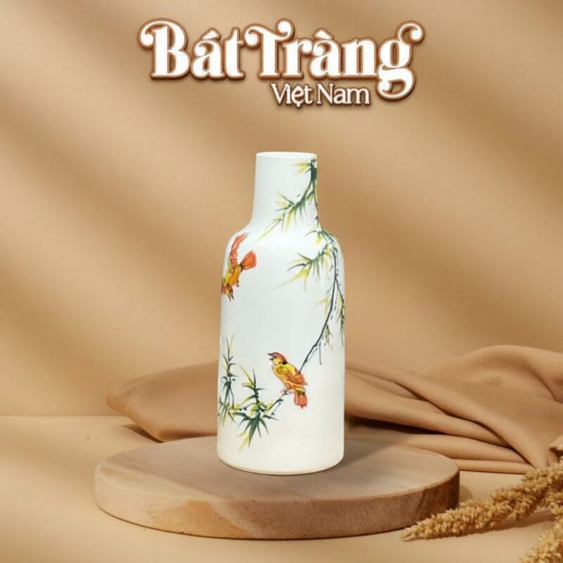 Trong dòng chảy của Gốm Bát Tràng Việt Nam, những chiếc lọ hoa không chỉ đơn thuần là vật dụng cắm hoa, mà còn là tác phẩm nghệ thuật kể chuyện, gửi gắm ước vọng về một cuộc sống an lành và tràn đầy sức sống. Chiếc lọ này, với dáng cổ cao thanh lịch và họa tiết vẽ tay tỉ mỉ, chính là một minh chứng sống động cho tinh hoa gốm sứ của làng nghề cổ truyền.